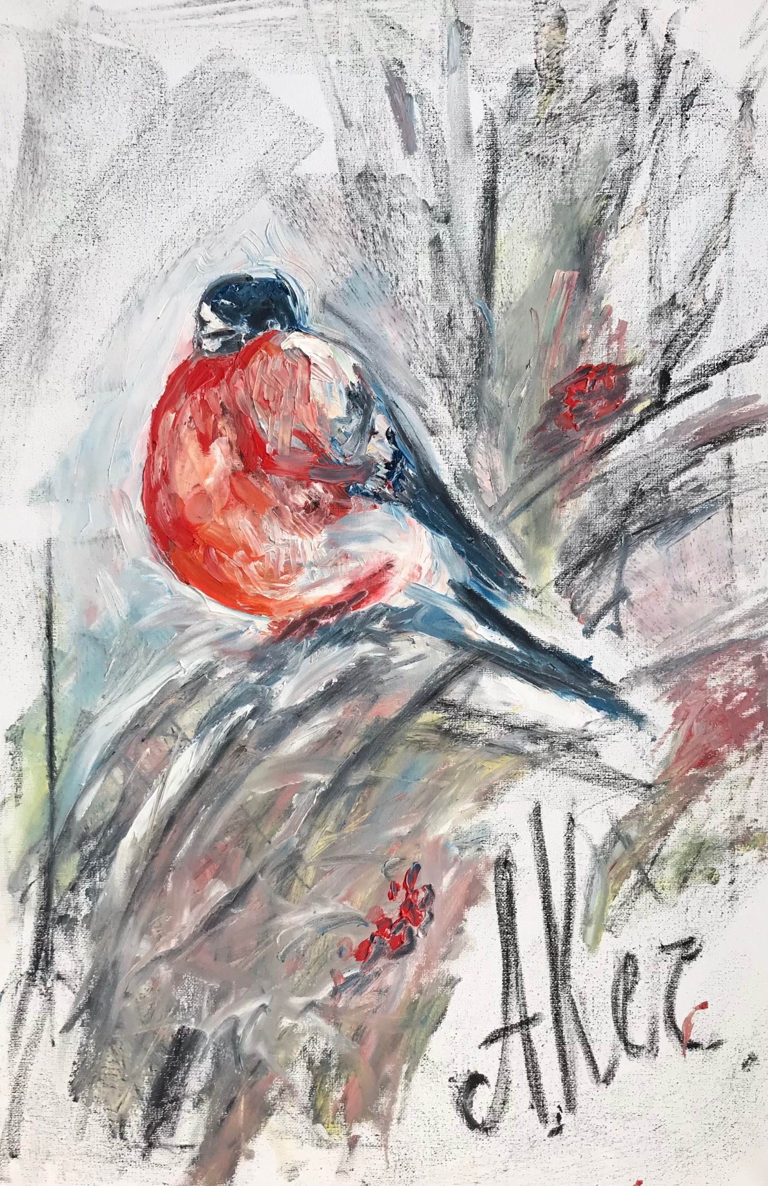 Картина современного художника Аллы Кечеджан "Снегирь", холст, масло, 60*40, 2026