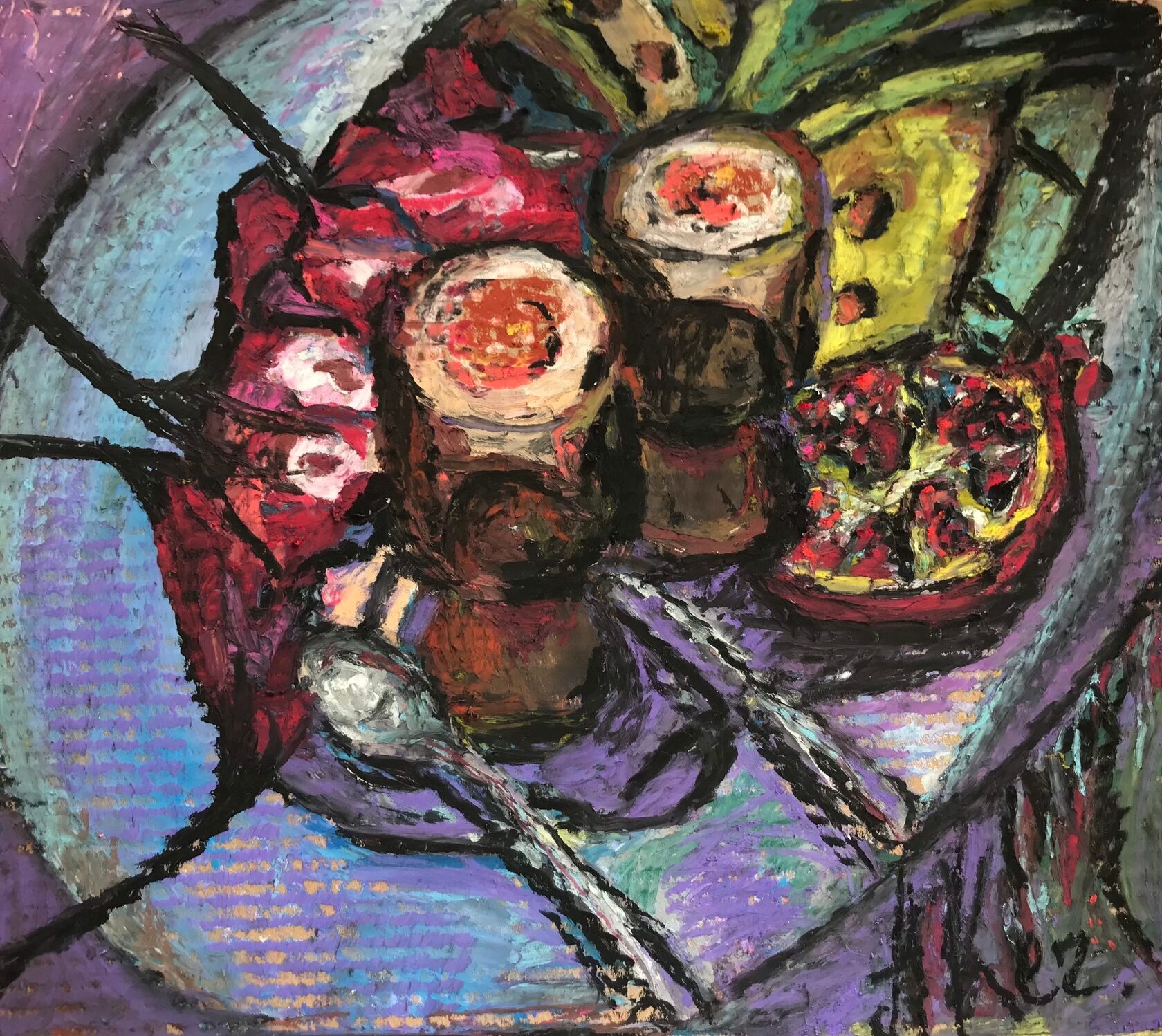Картина современного художника Аллы Кечежан, картон, масляная пастель, 31*35, 2026