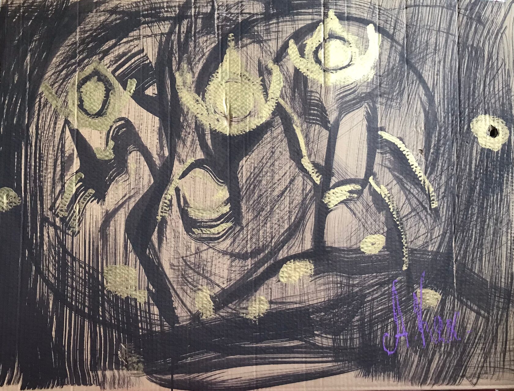 Картина современного художника Аллы Кечеджан "Цари", гафрированный картон, тушь, гуашь, 80*60
