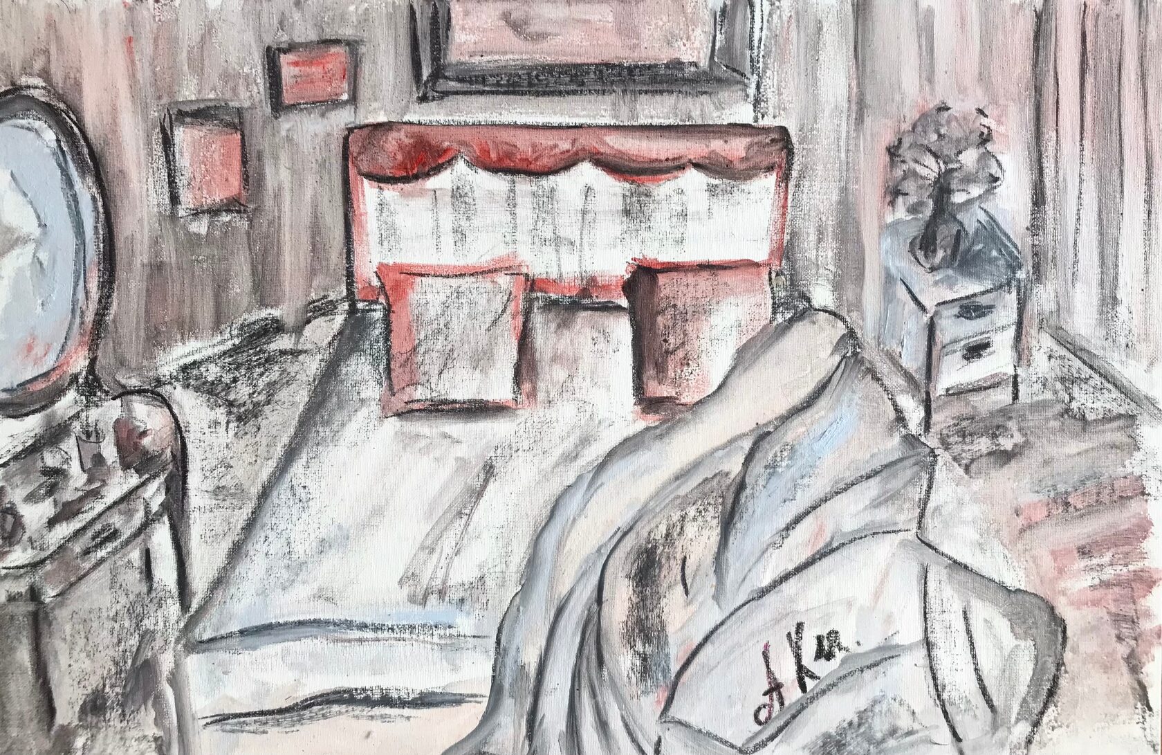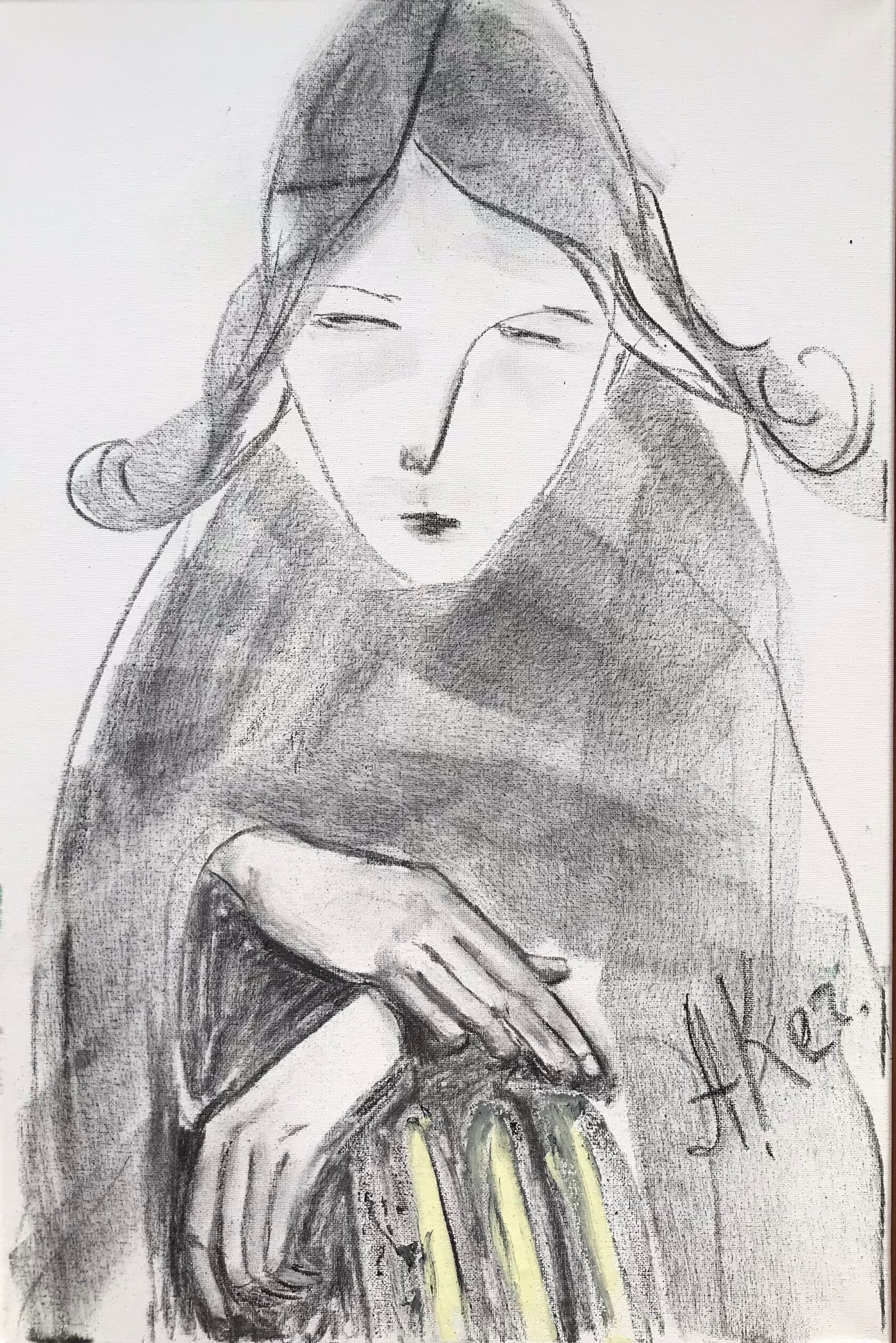 Картина современного художника Аллы Кечеджан "Плед", холст, уголь, масло, 60*40