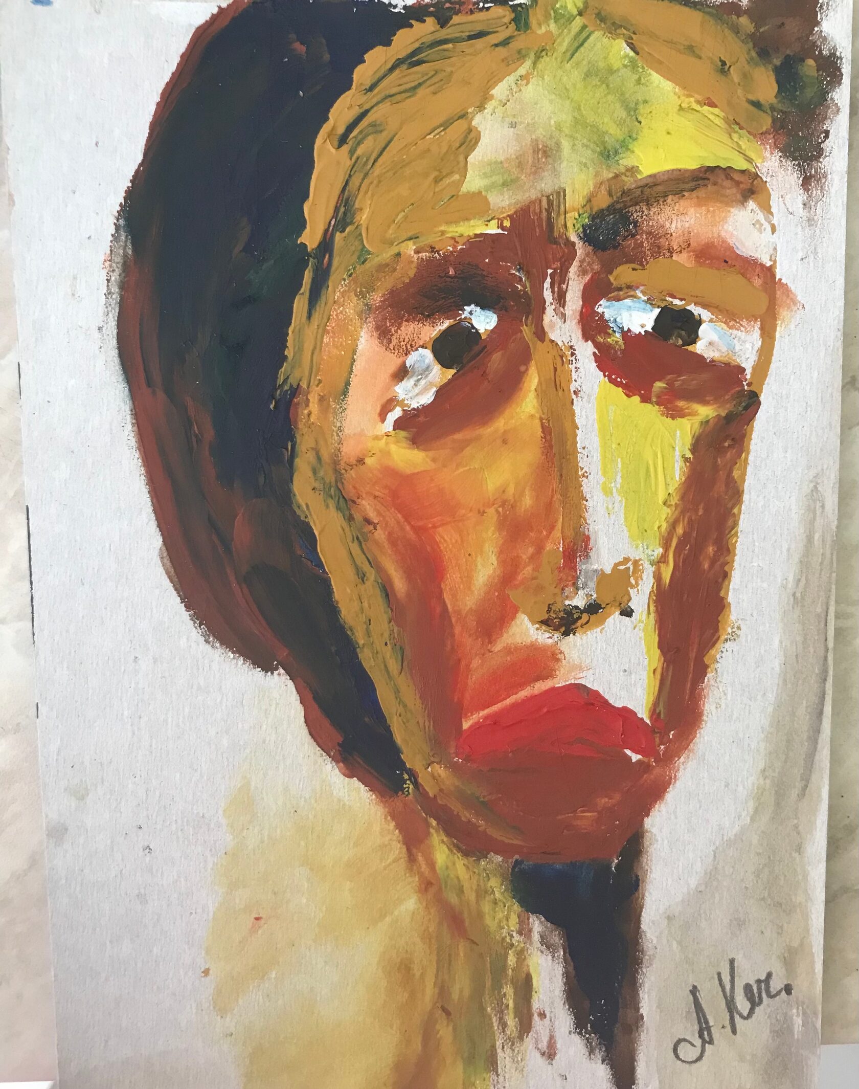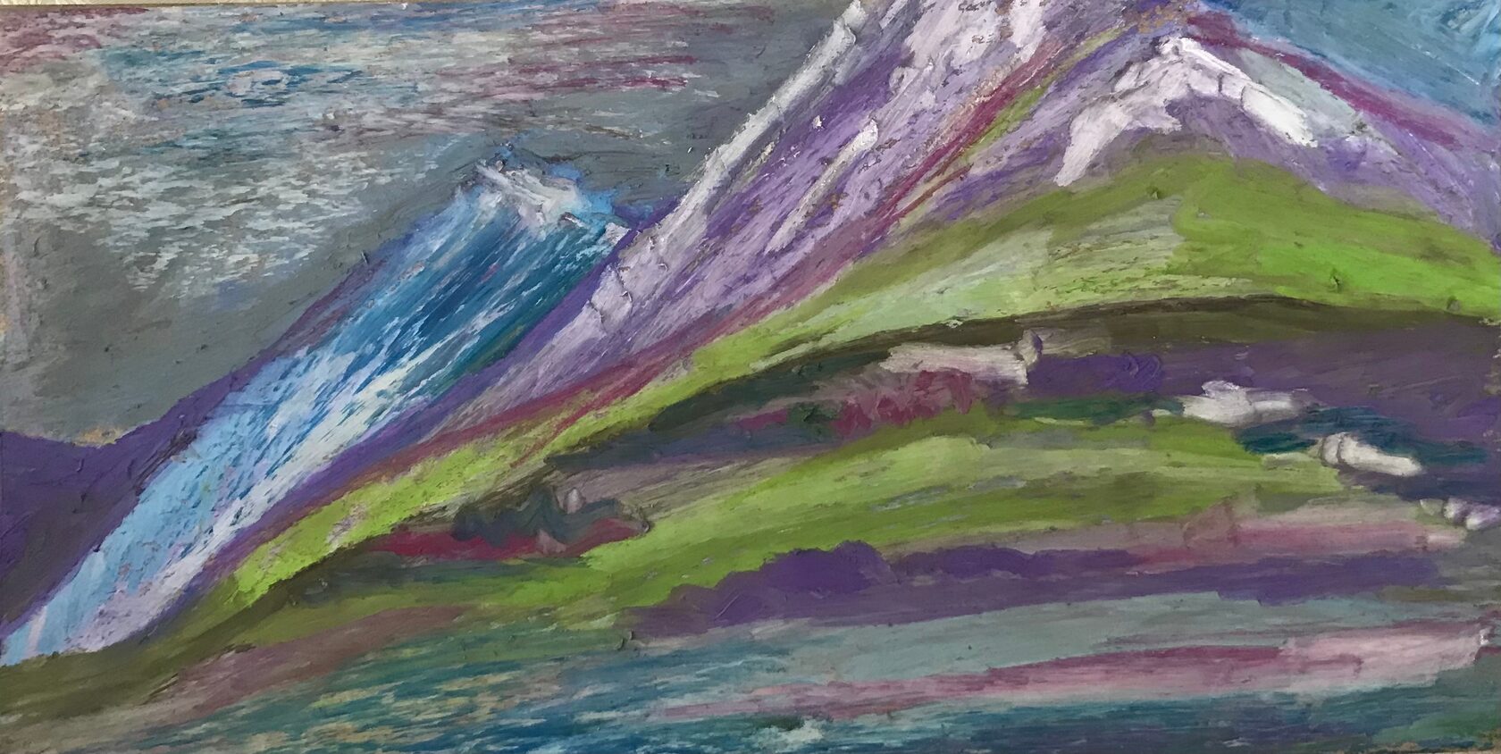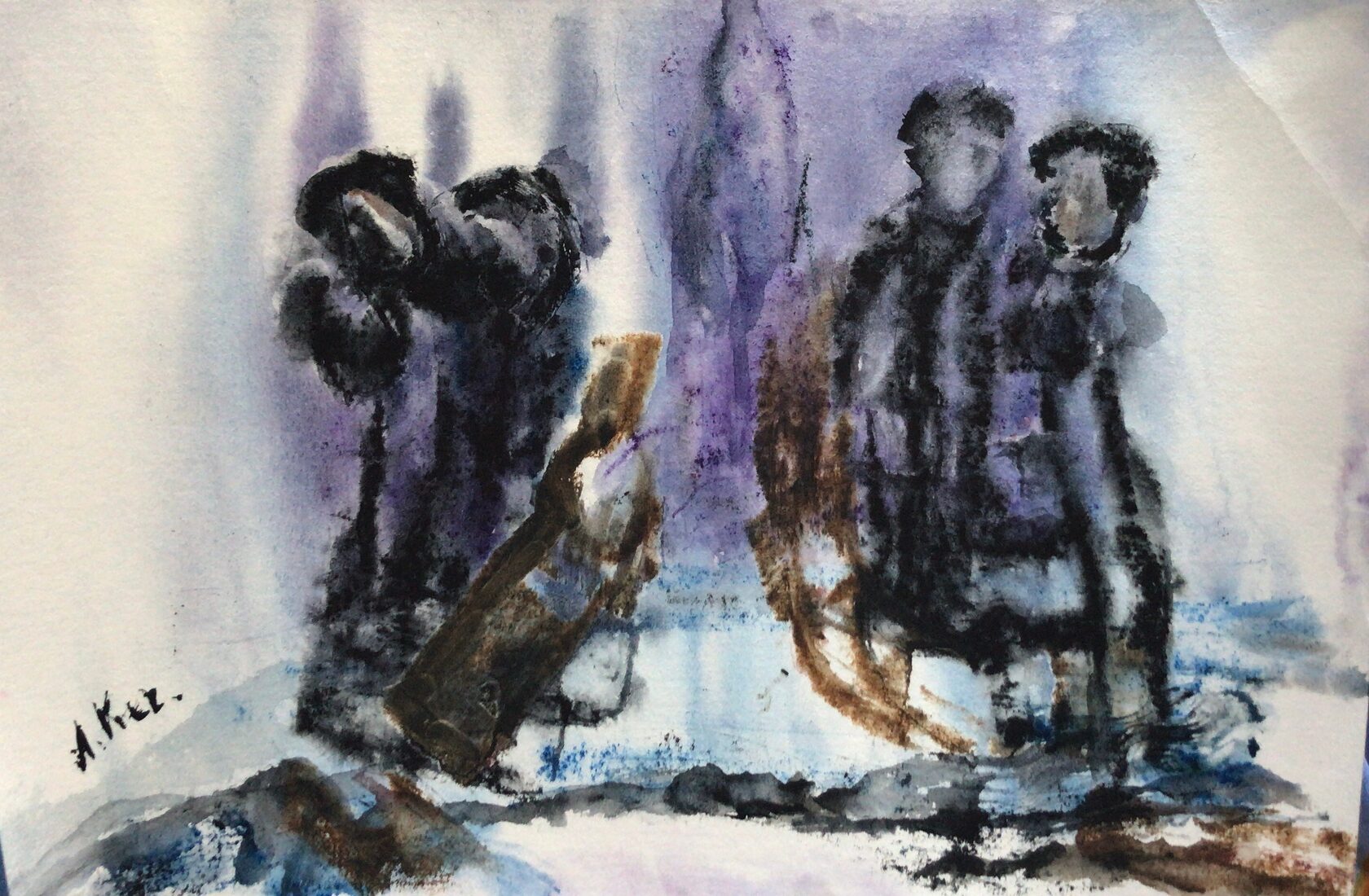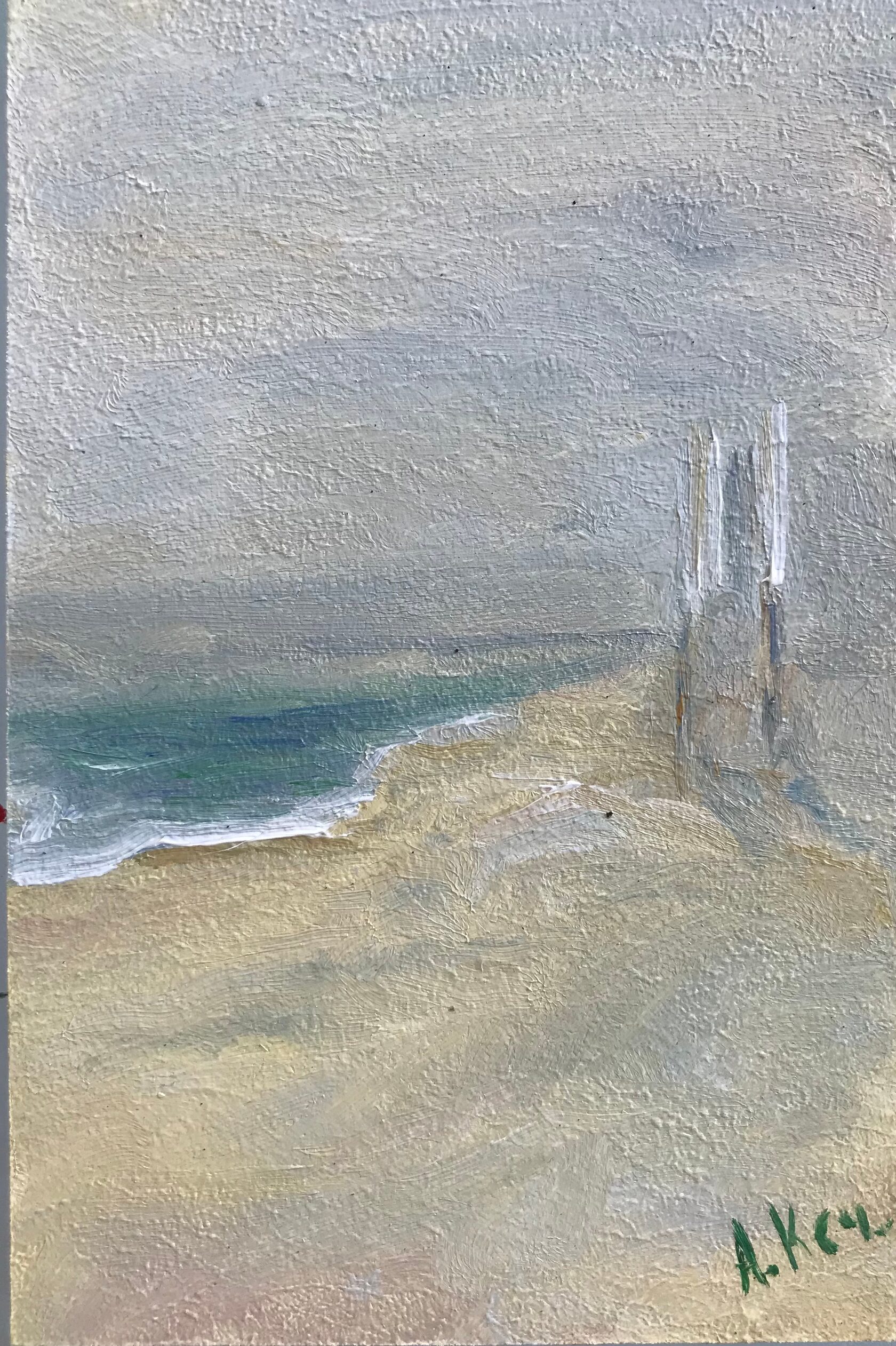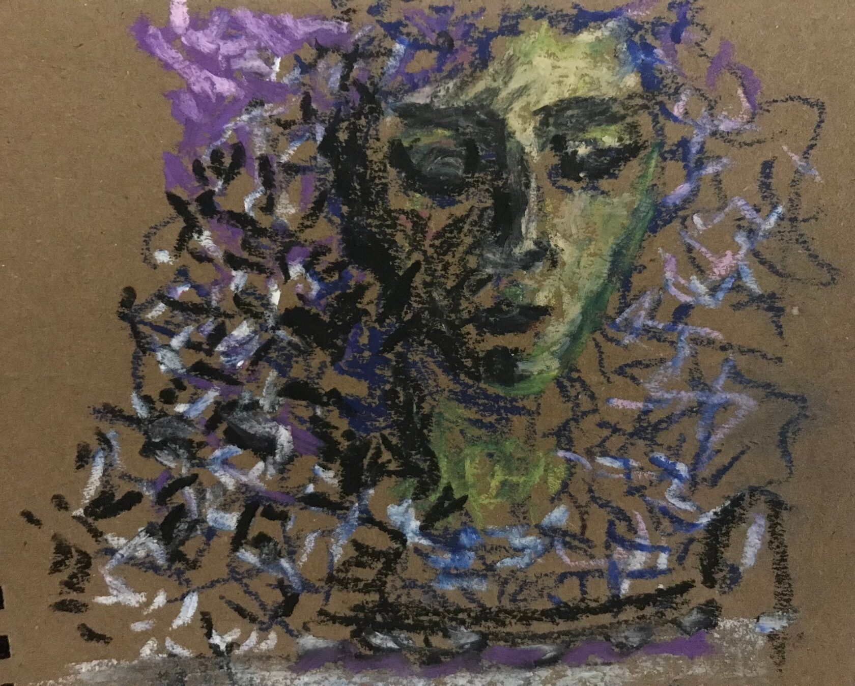 Картина Аллы Кечеджан "Хмурый", бумага, масляные мелки, 20*30