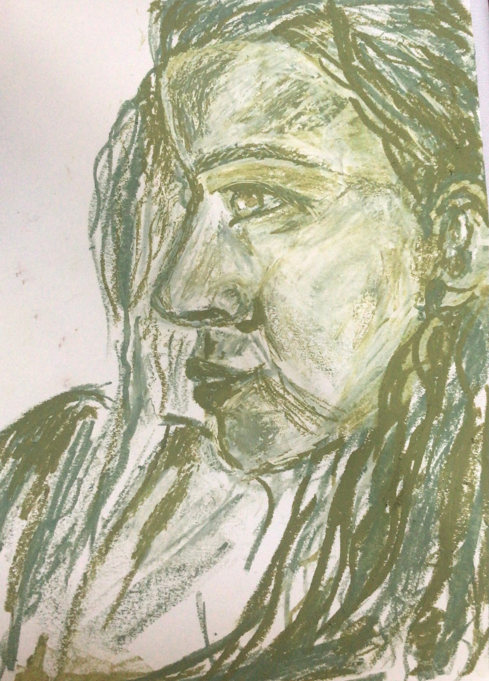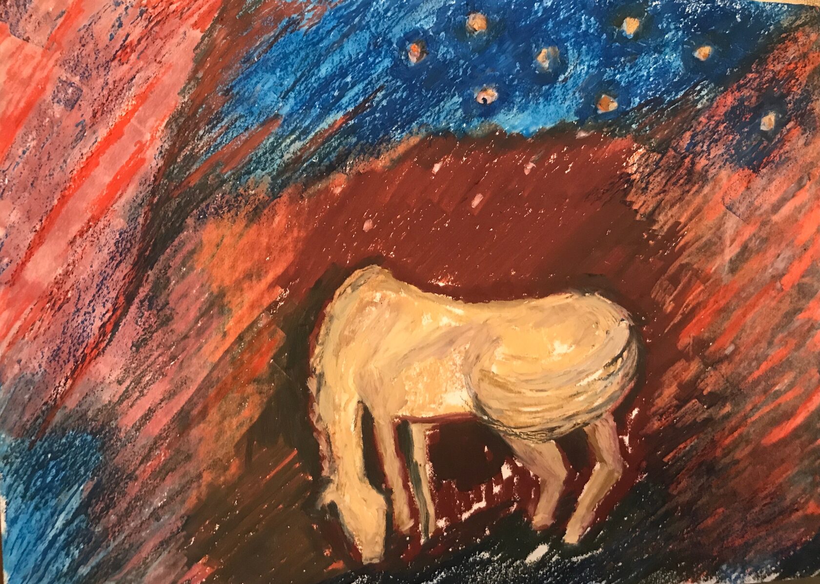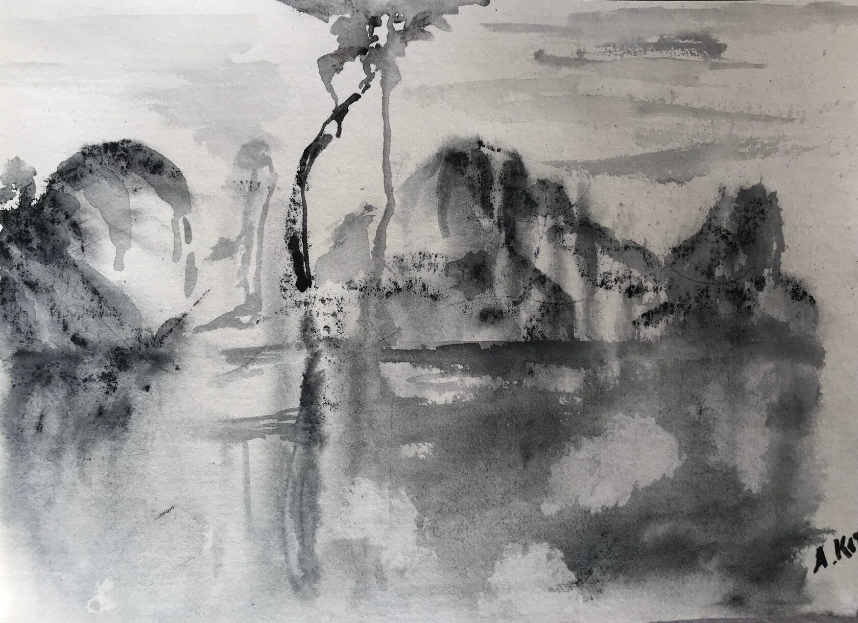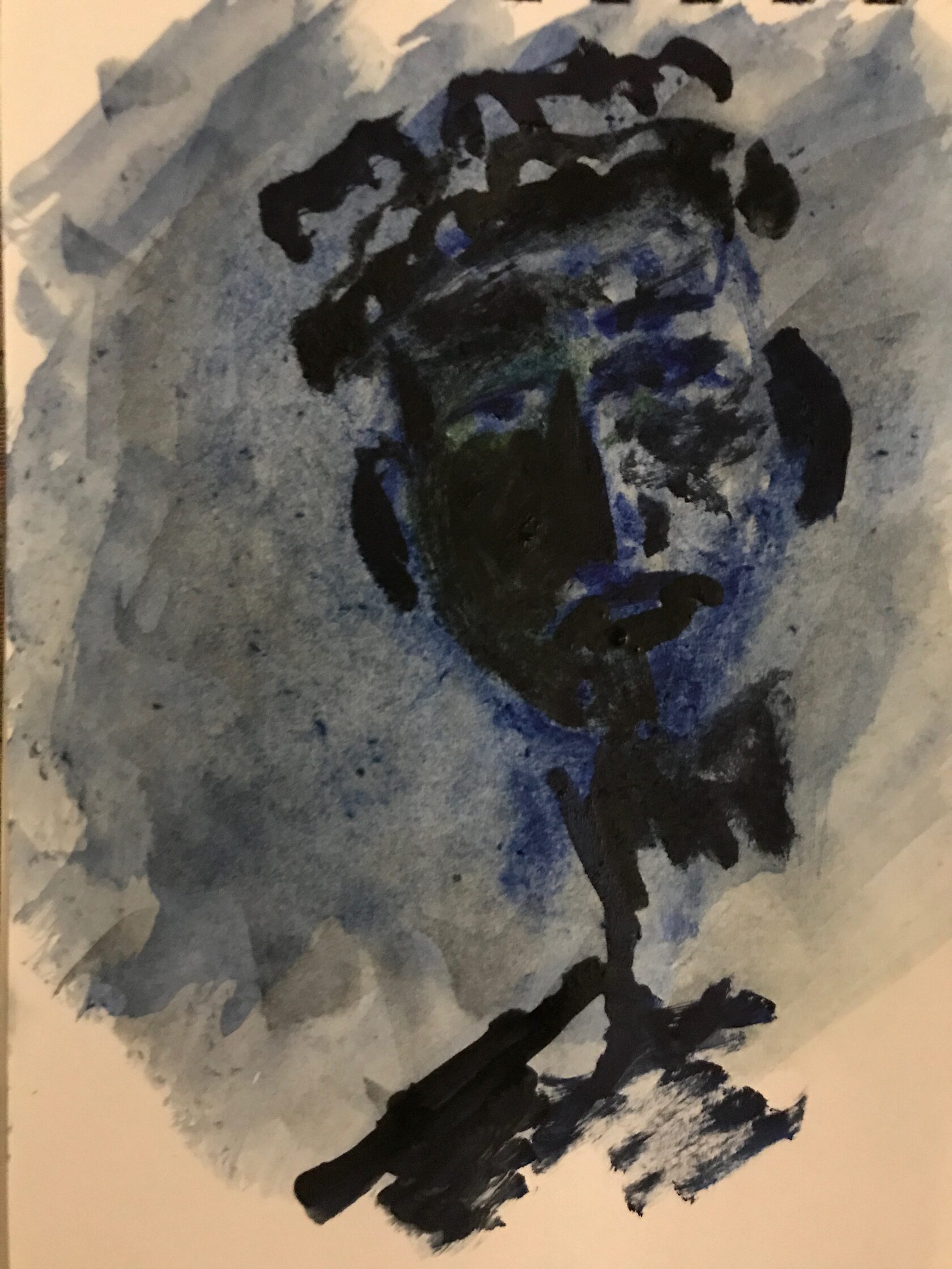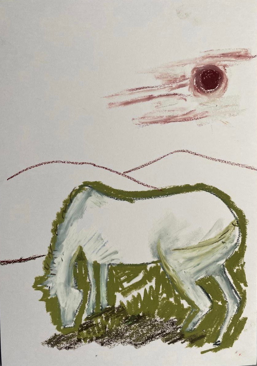 Картина Аллы Кечеджан "Хмурый", бумага, масляные мелки, 20*30