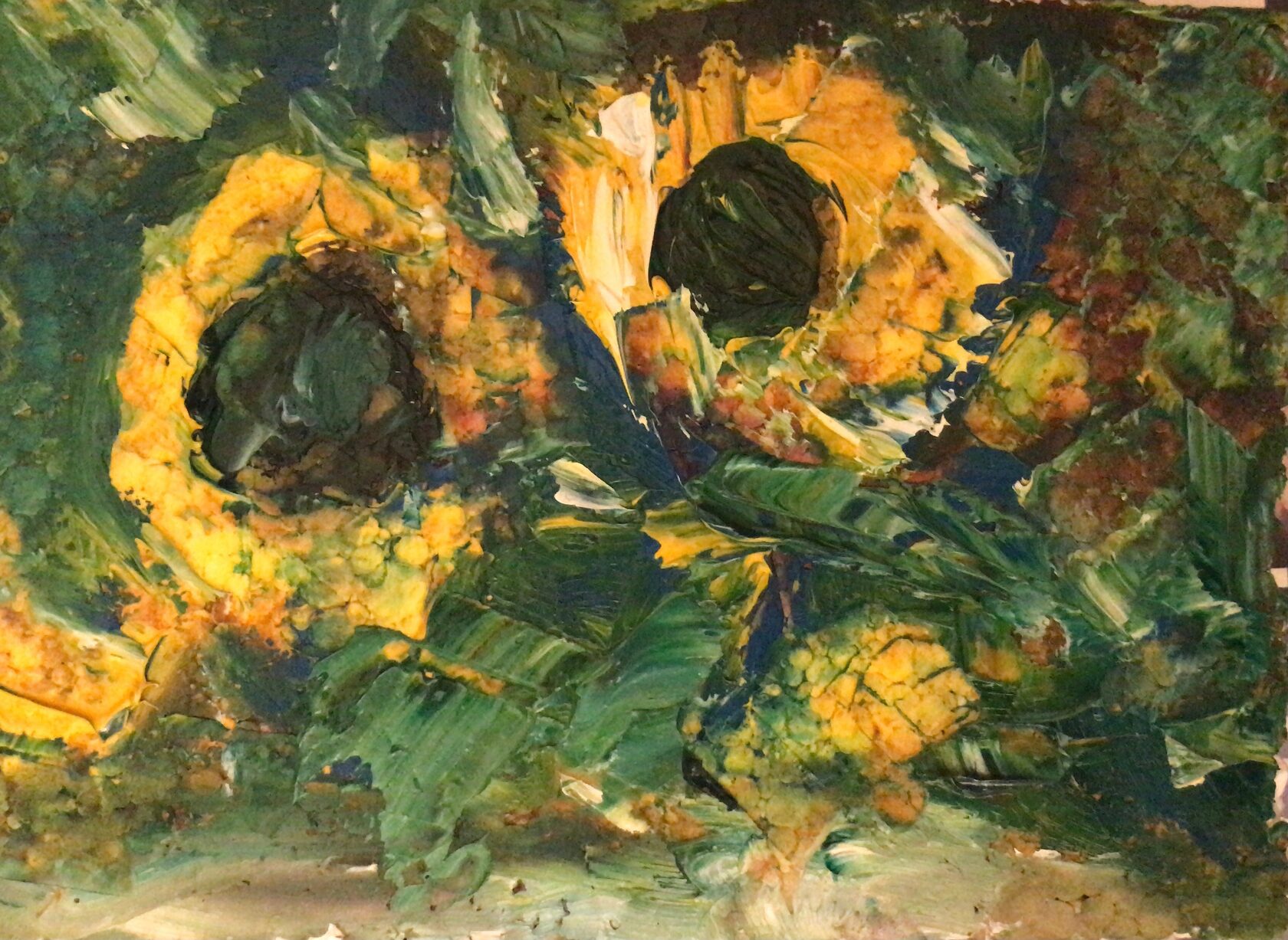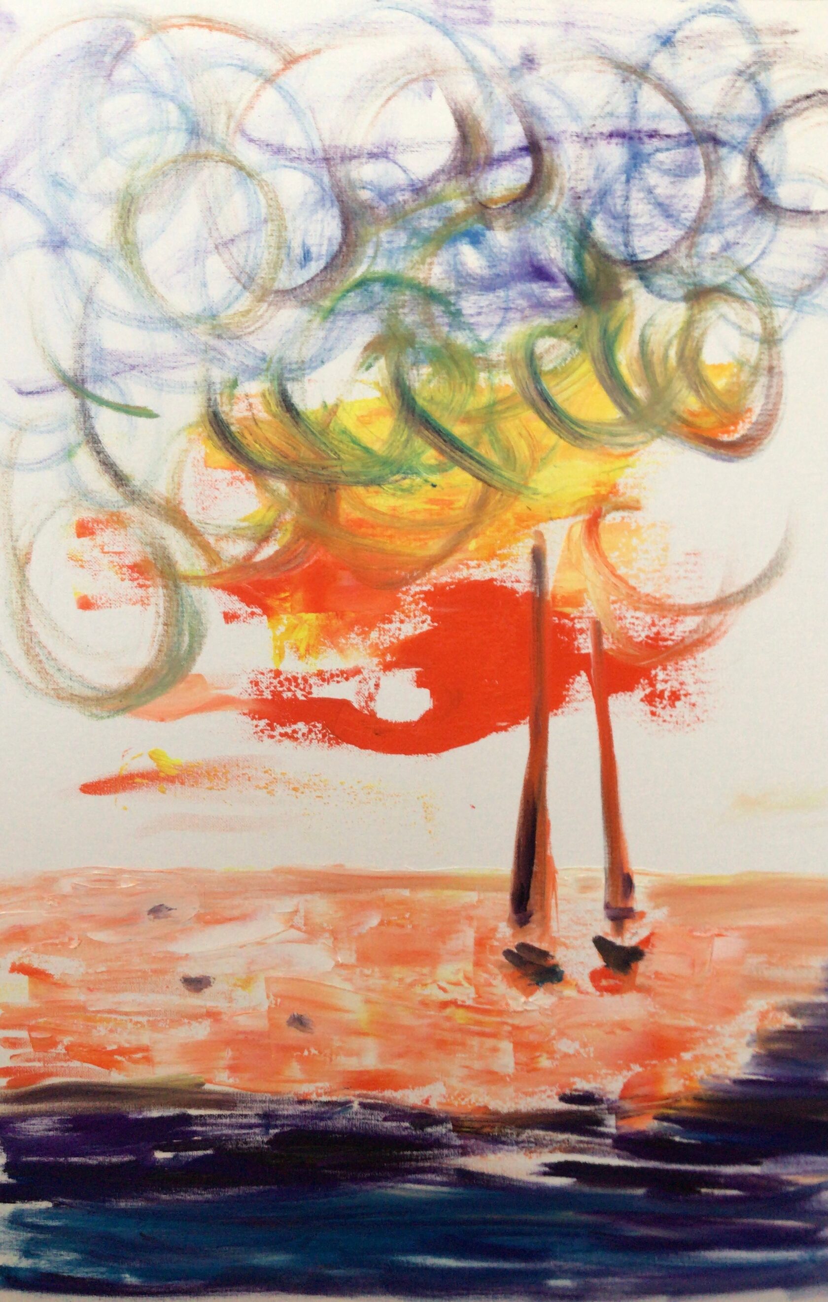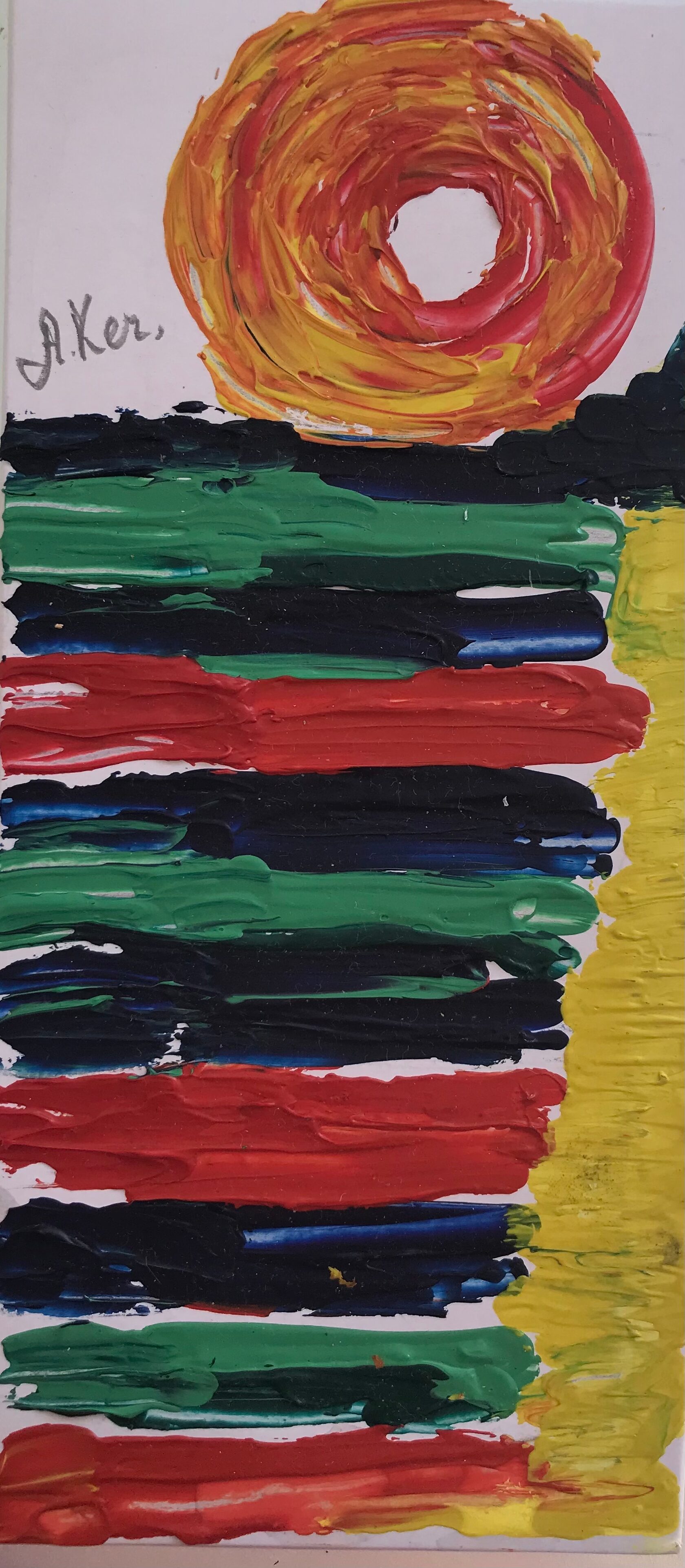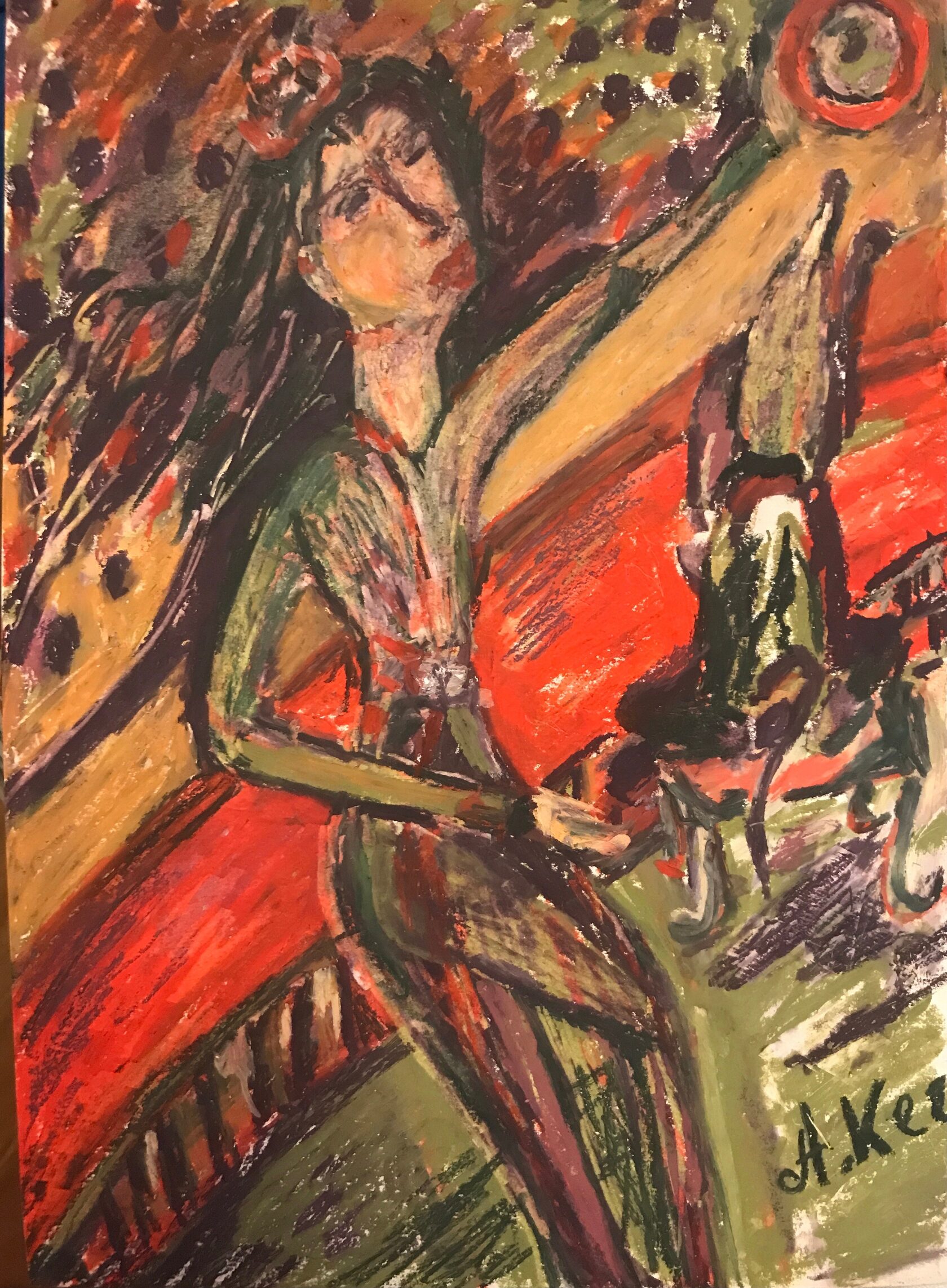 Картина Аллы Кечеджан "Глядя на Кандинского", бумага, масляные мелки, 20*30