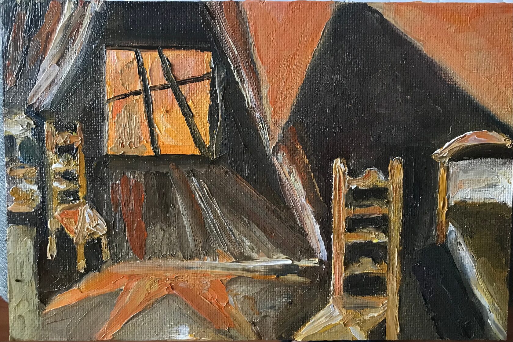 Картина современного художника Аллы Кечеджан "Спальня", холст, масло, 25*35