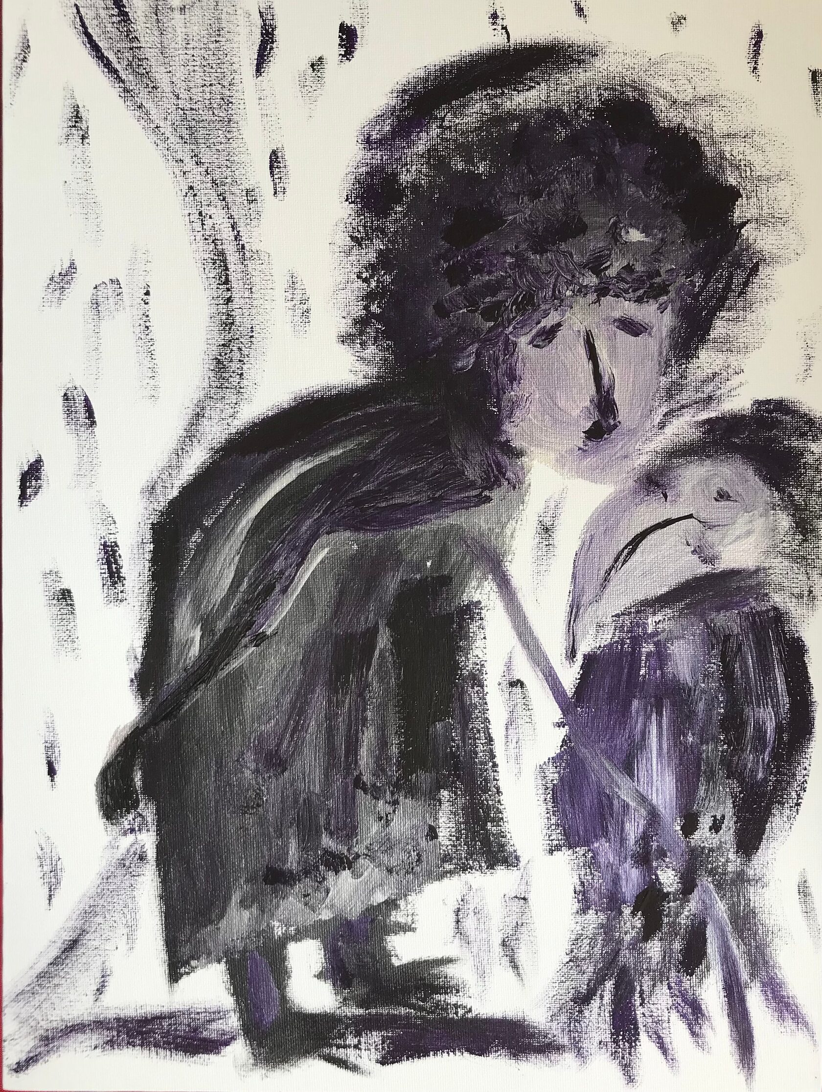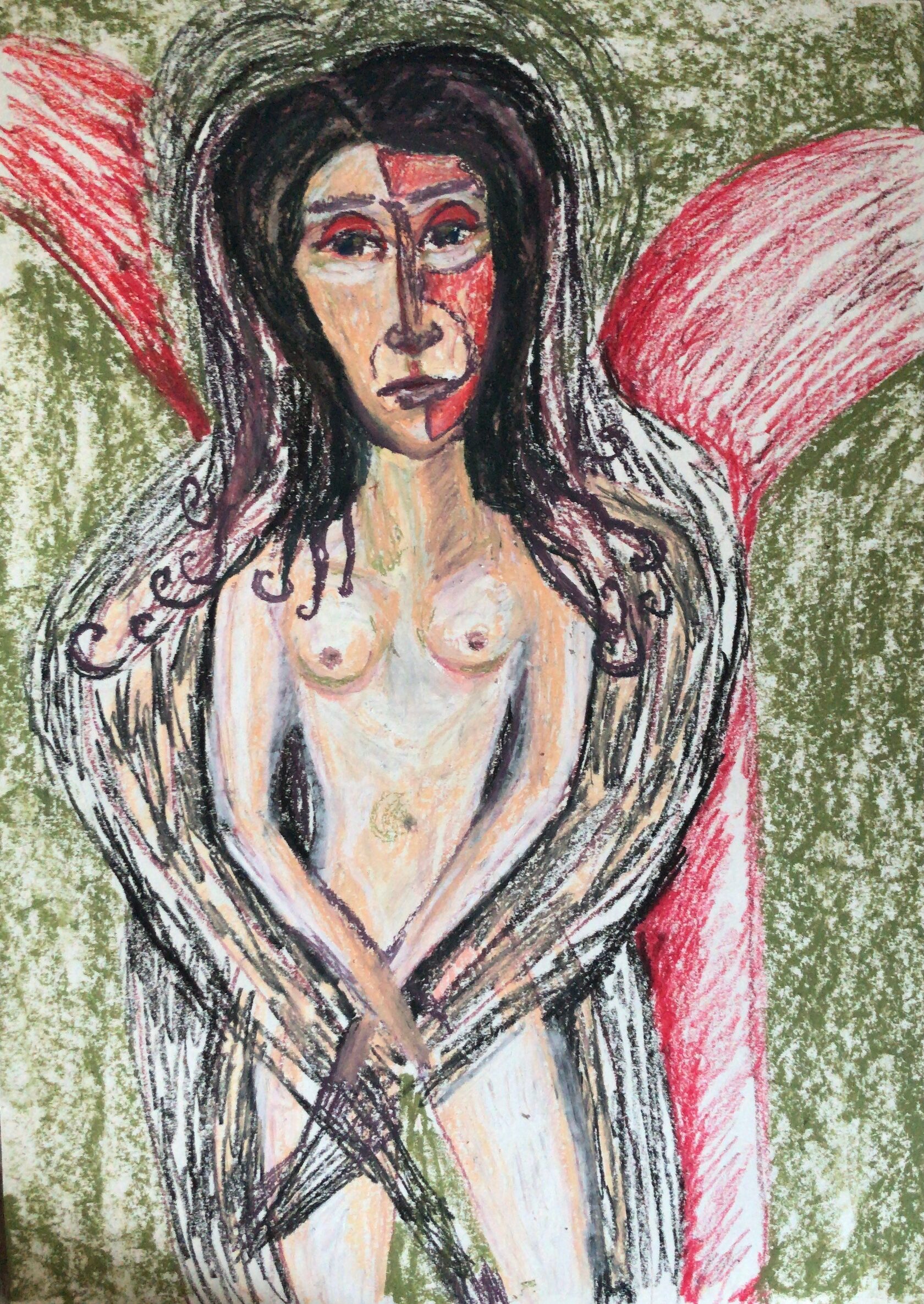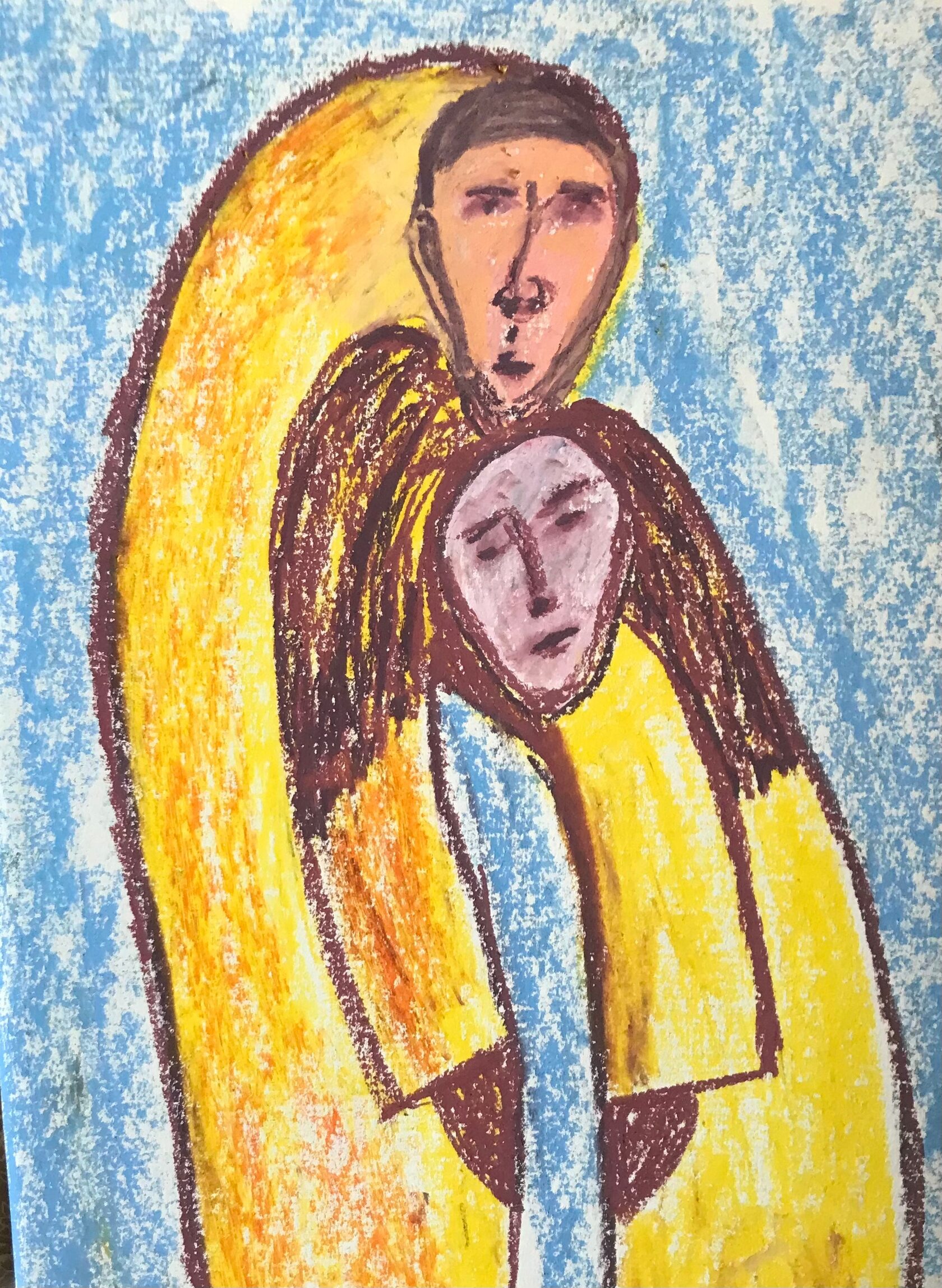 Картина Аллы Кечеджан "Петр и Февронья", бумага, масляная пастель, 20*30