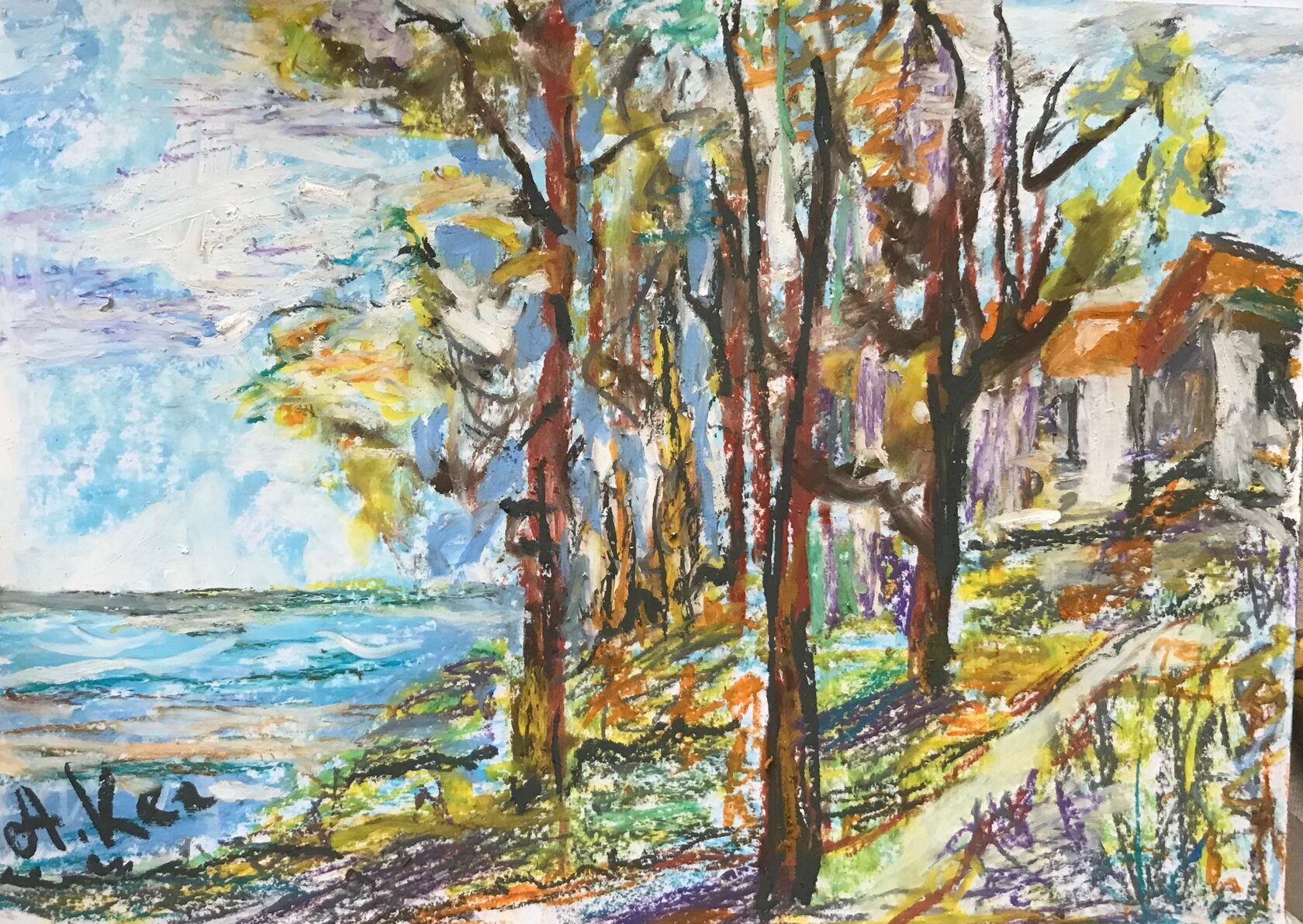 Рисунок Аллы Кечеджан "Ранняя весна", бумага, мелки 20;30