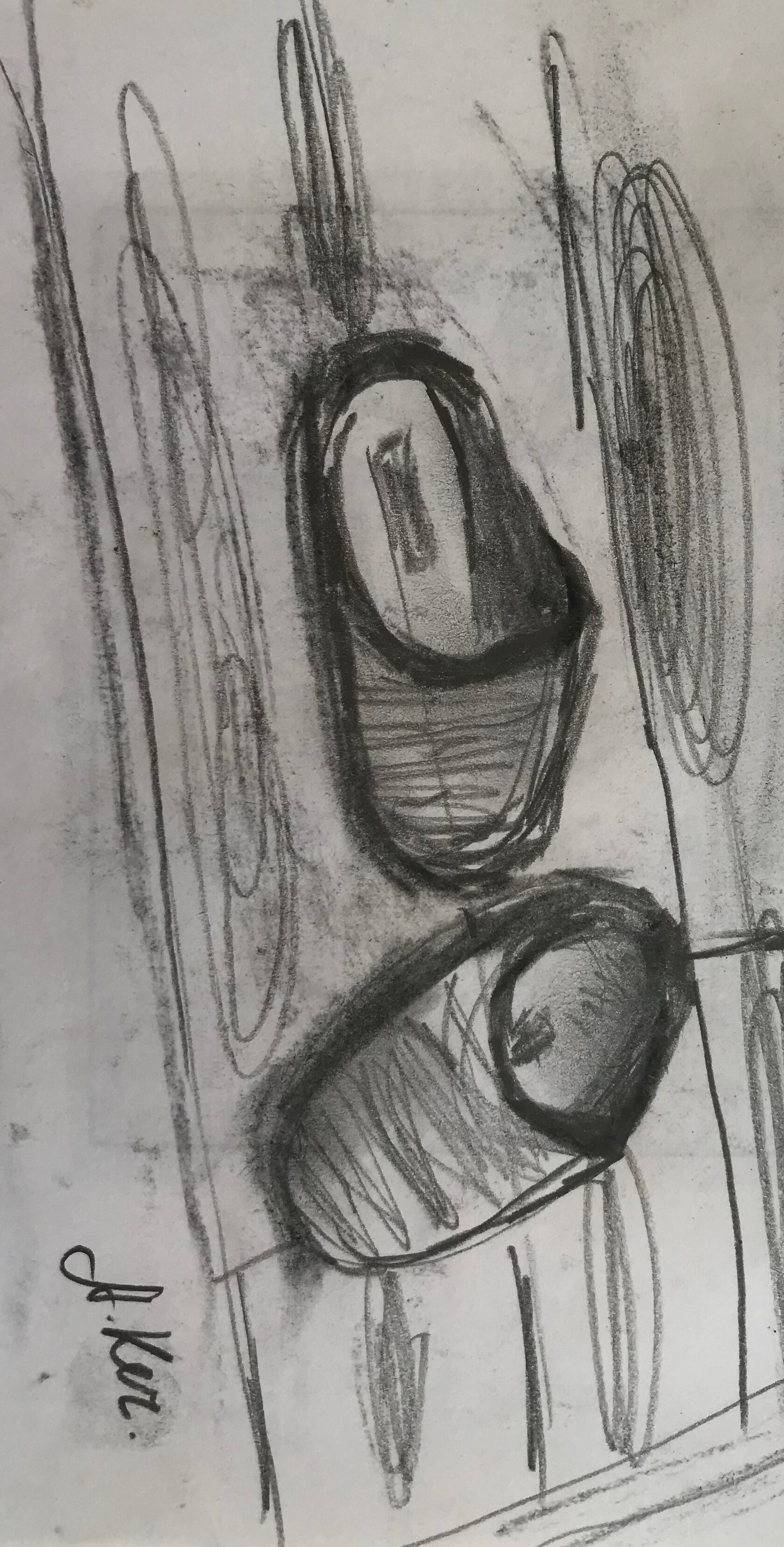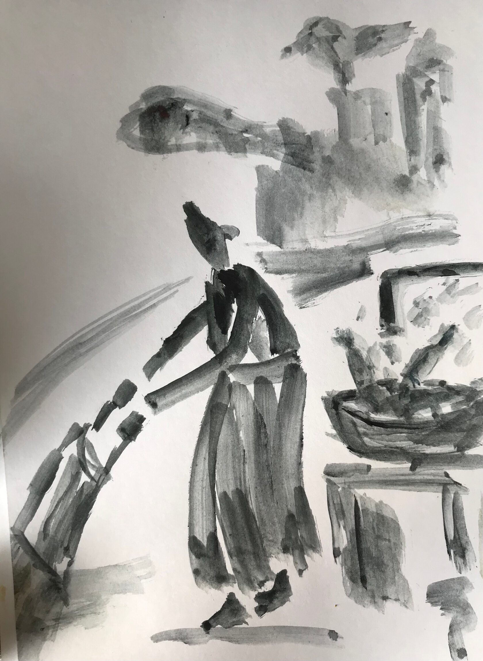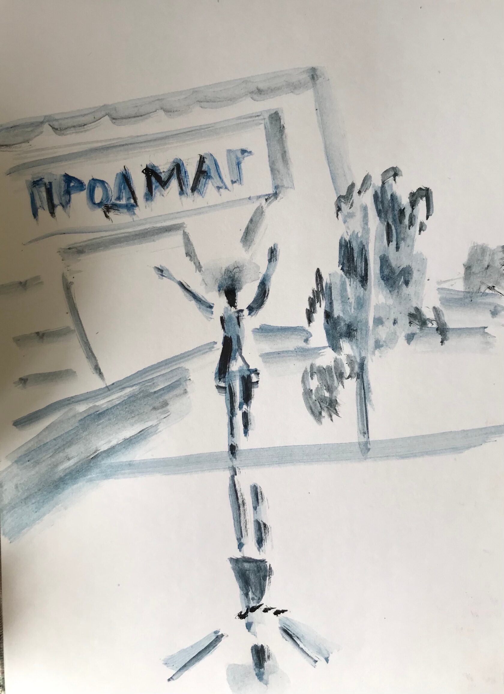 Рисунок "Хабар" Аллы Кечеджан по мотивам Стругацких, бумага, карандаш, 5*10