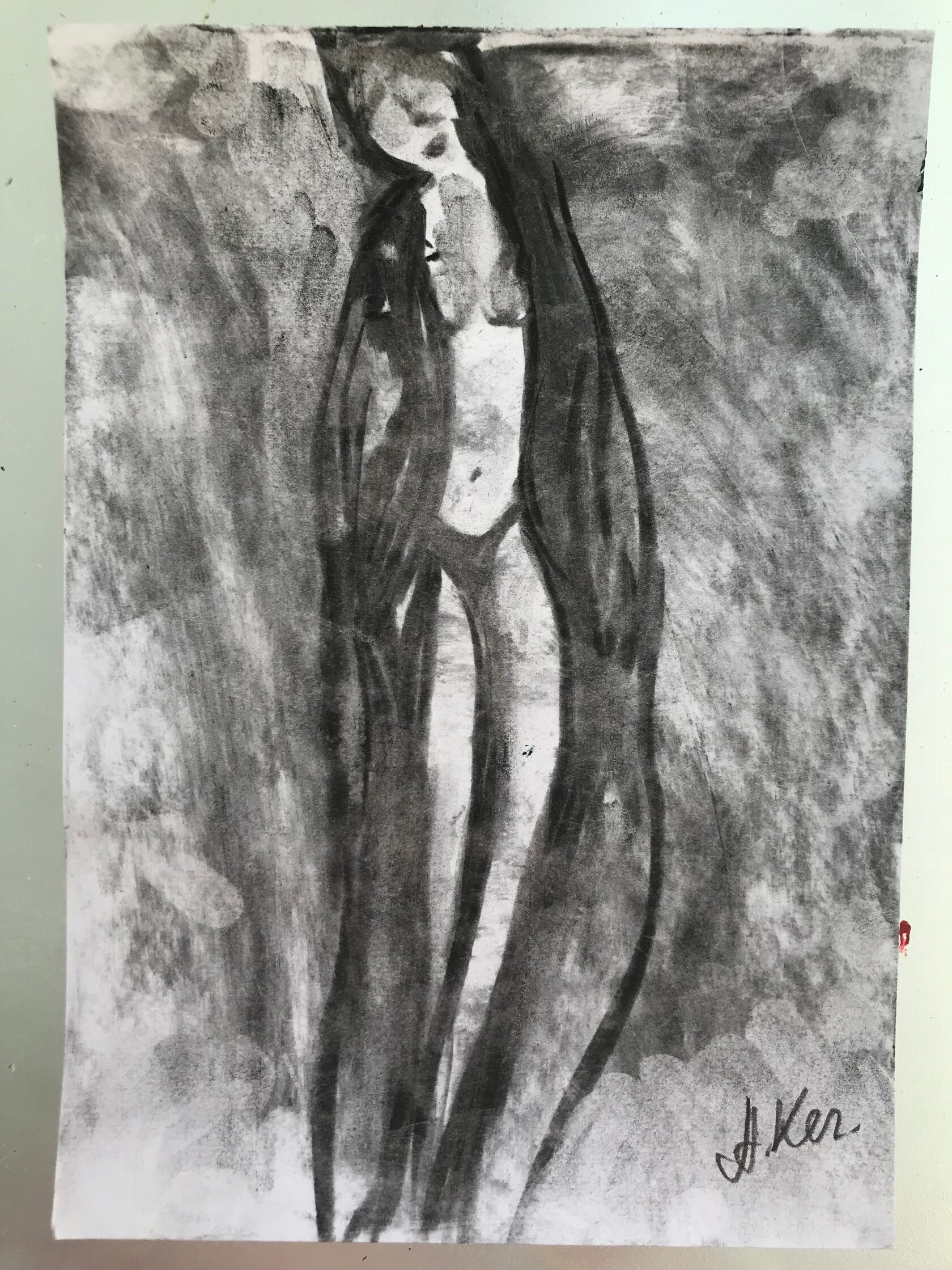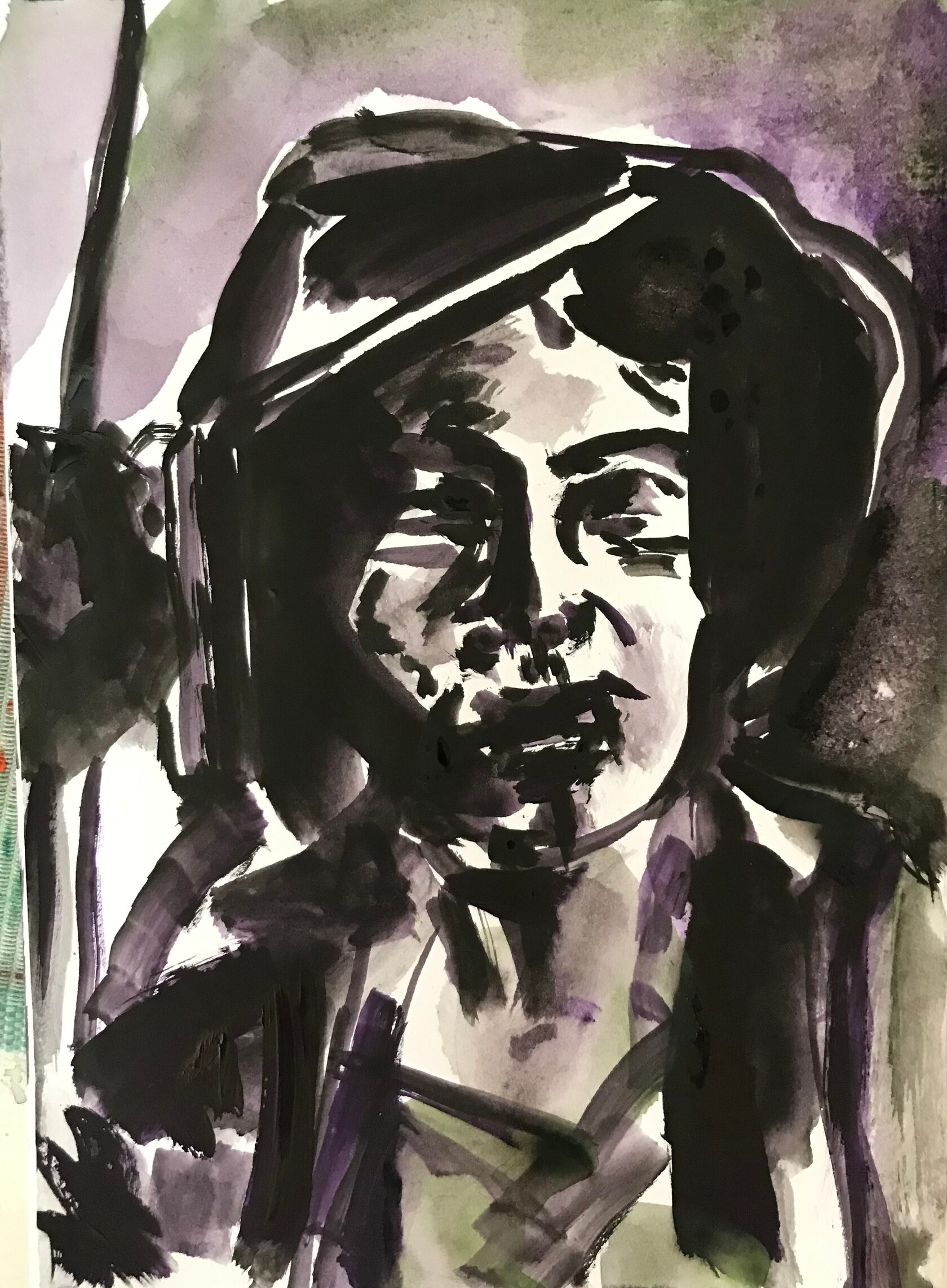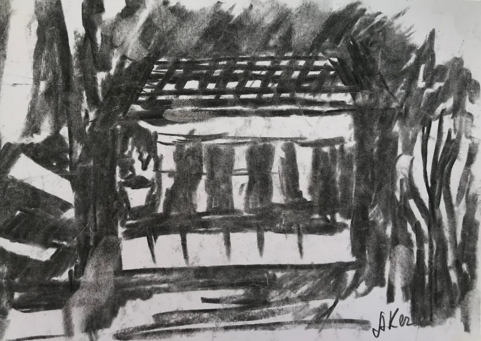 Рисунок "Хабар" Аллы Кечеджан по мотивам Стругацких, бумага, карандаш, 5*10