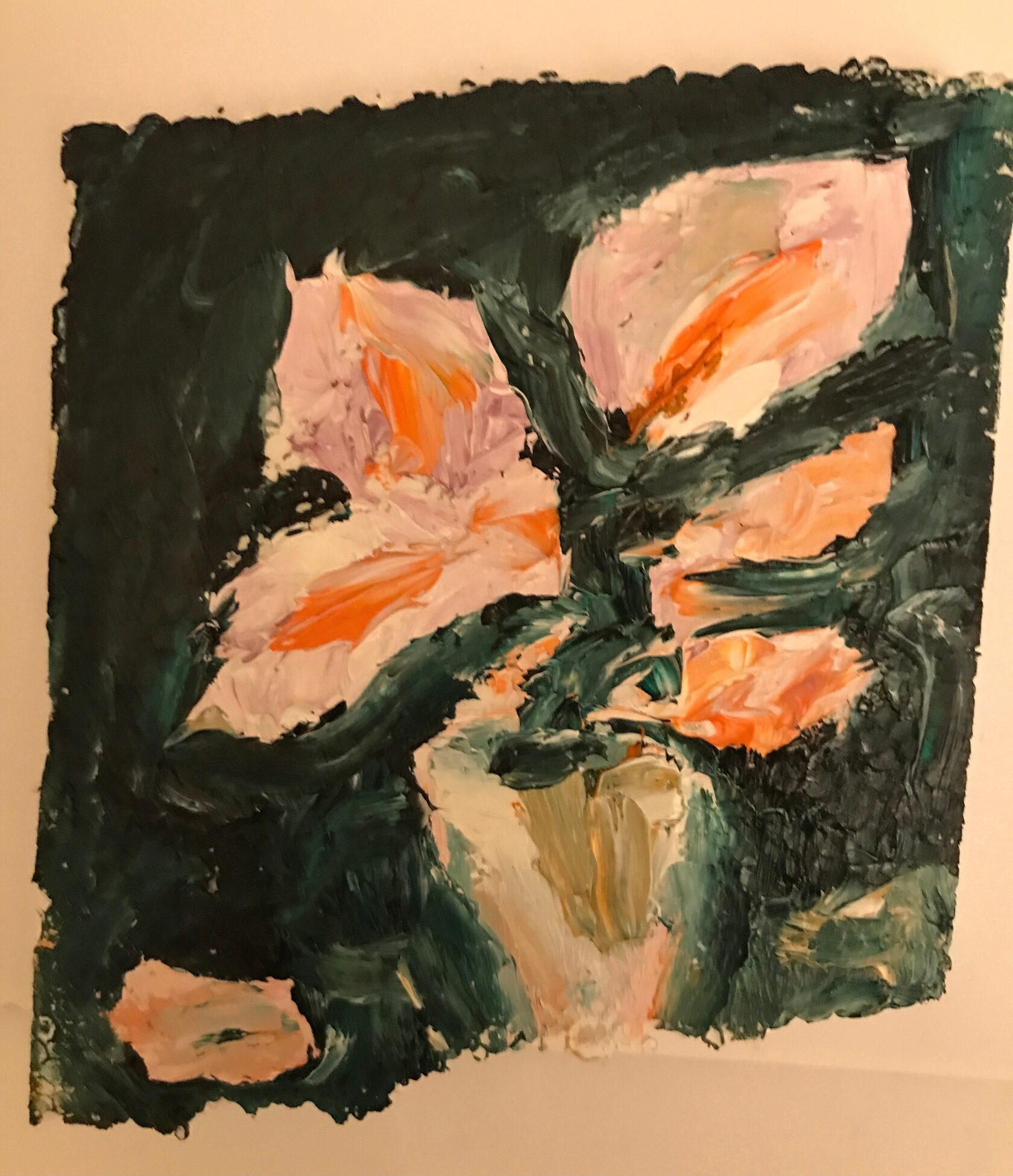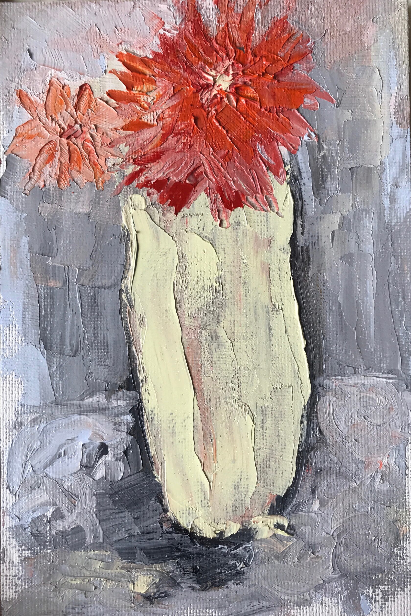 Картина современного художника Аллы Кечеджан "Космея"", ламинированная доска, масло, 18*21
