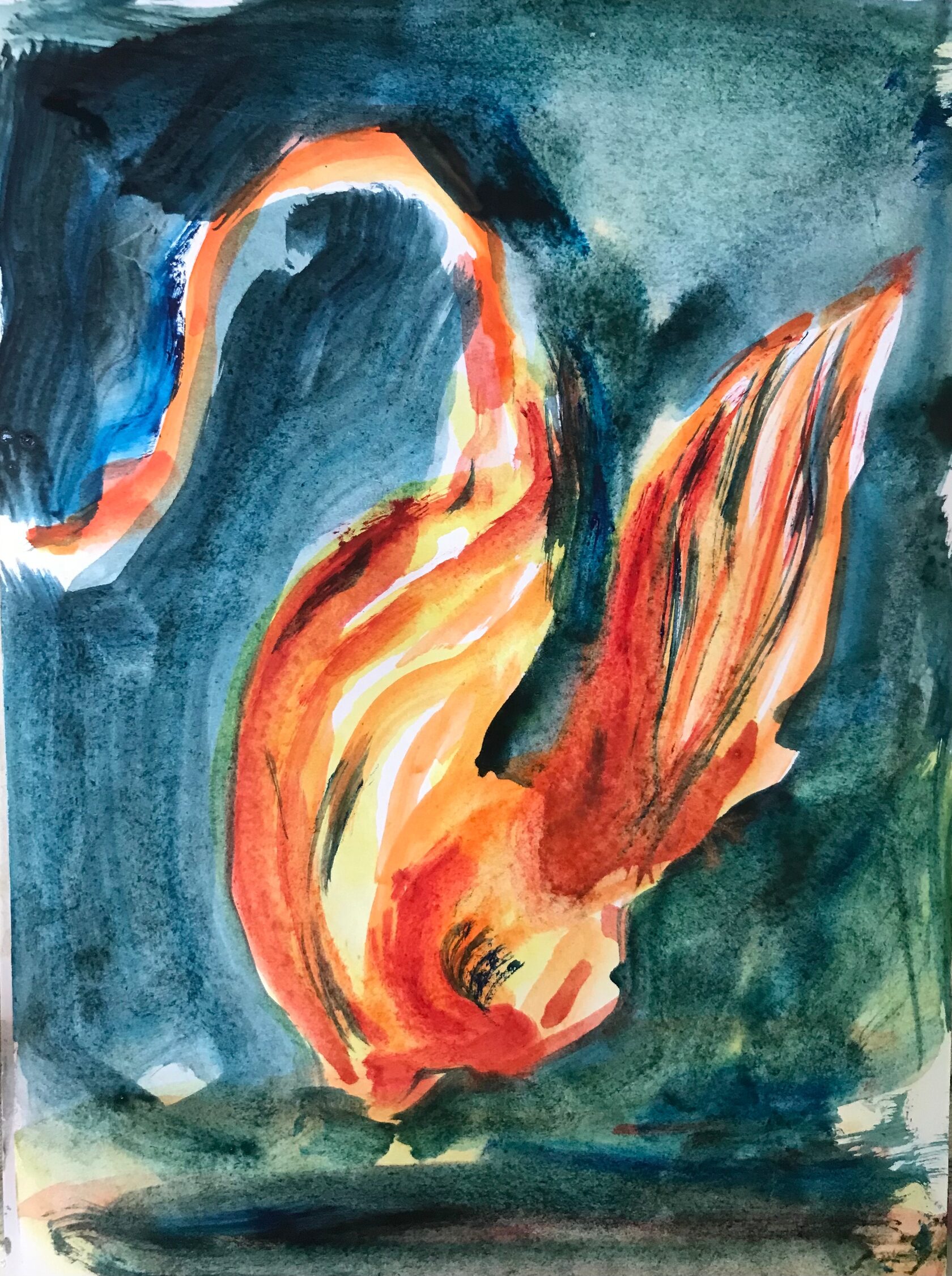 Картина современного художника Аллы Кечеджан "Огненная птица", холст, масло, 25*35