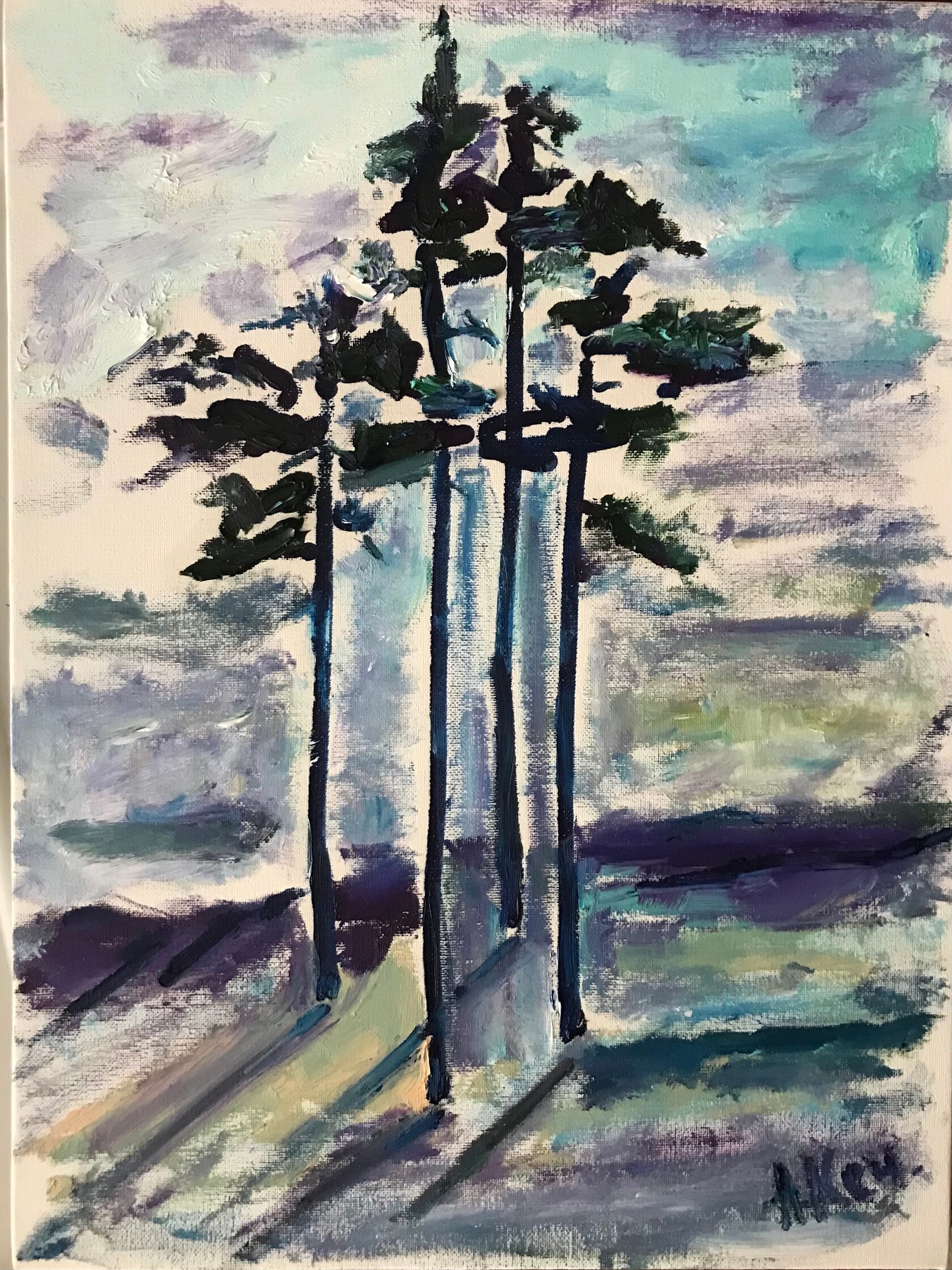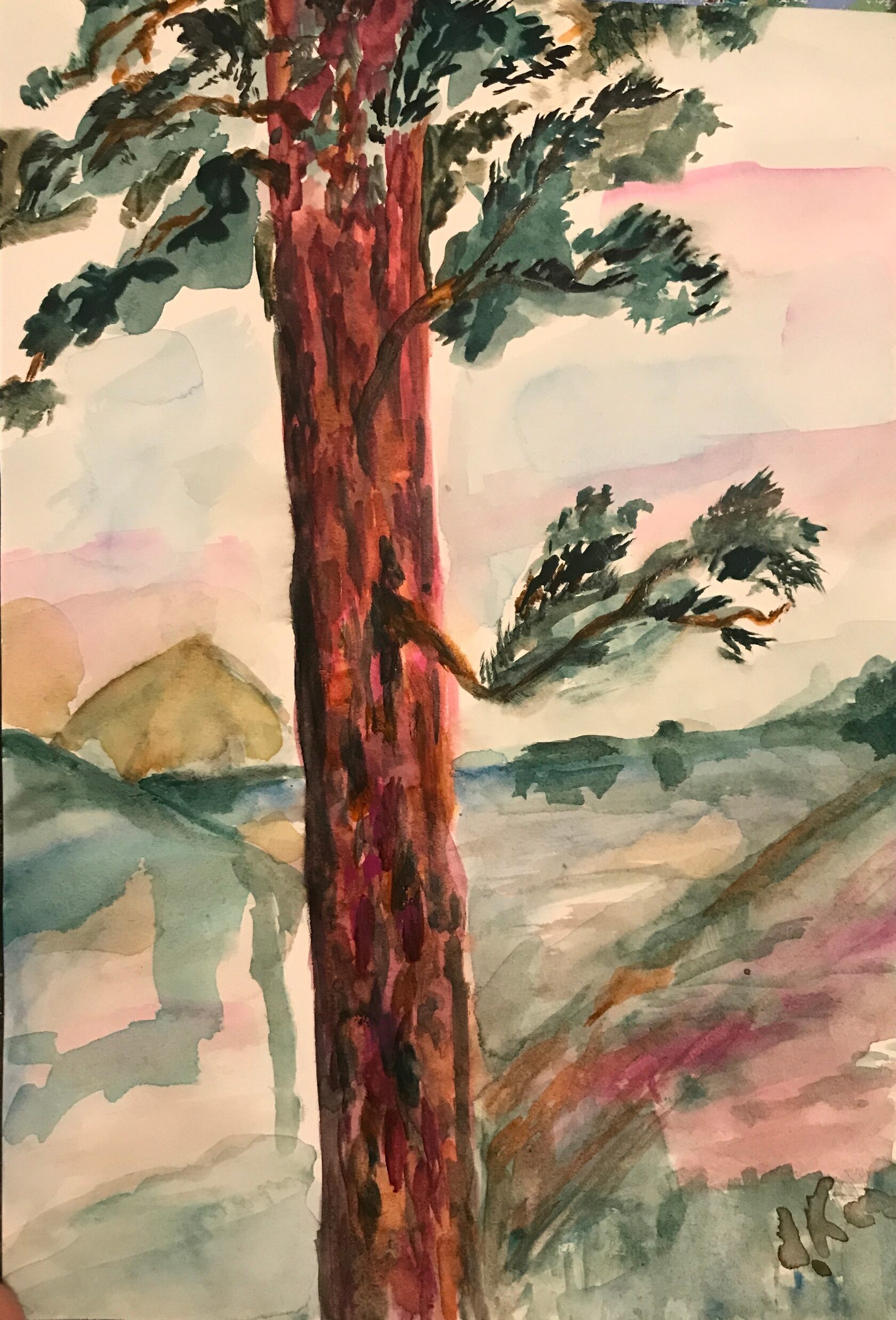 Картина современного художника Аллы Кечеджан "Сосна", ламинированная доска, масло, 18*21