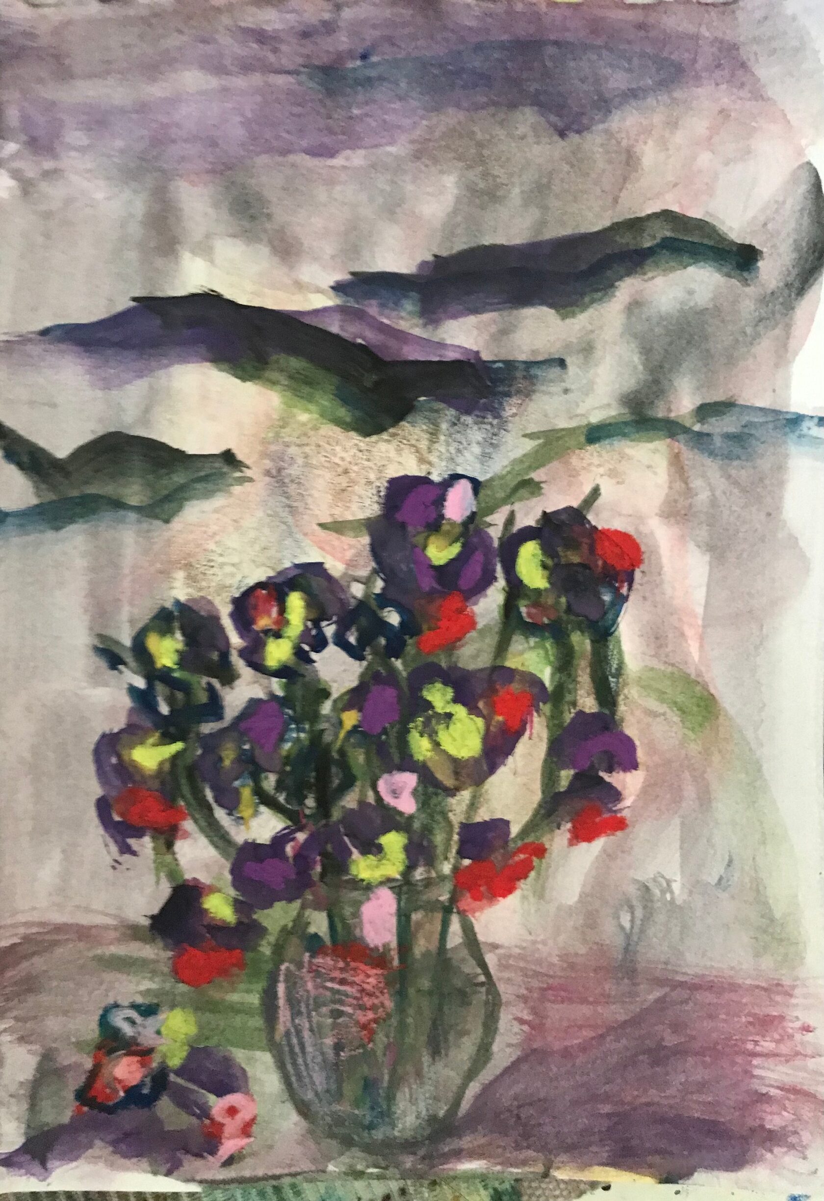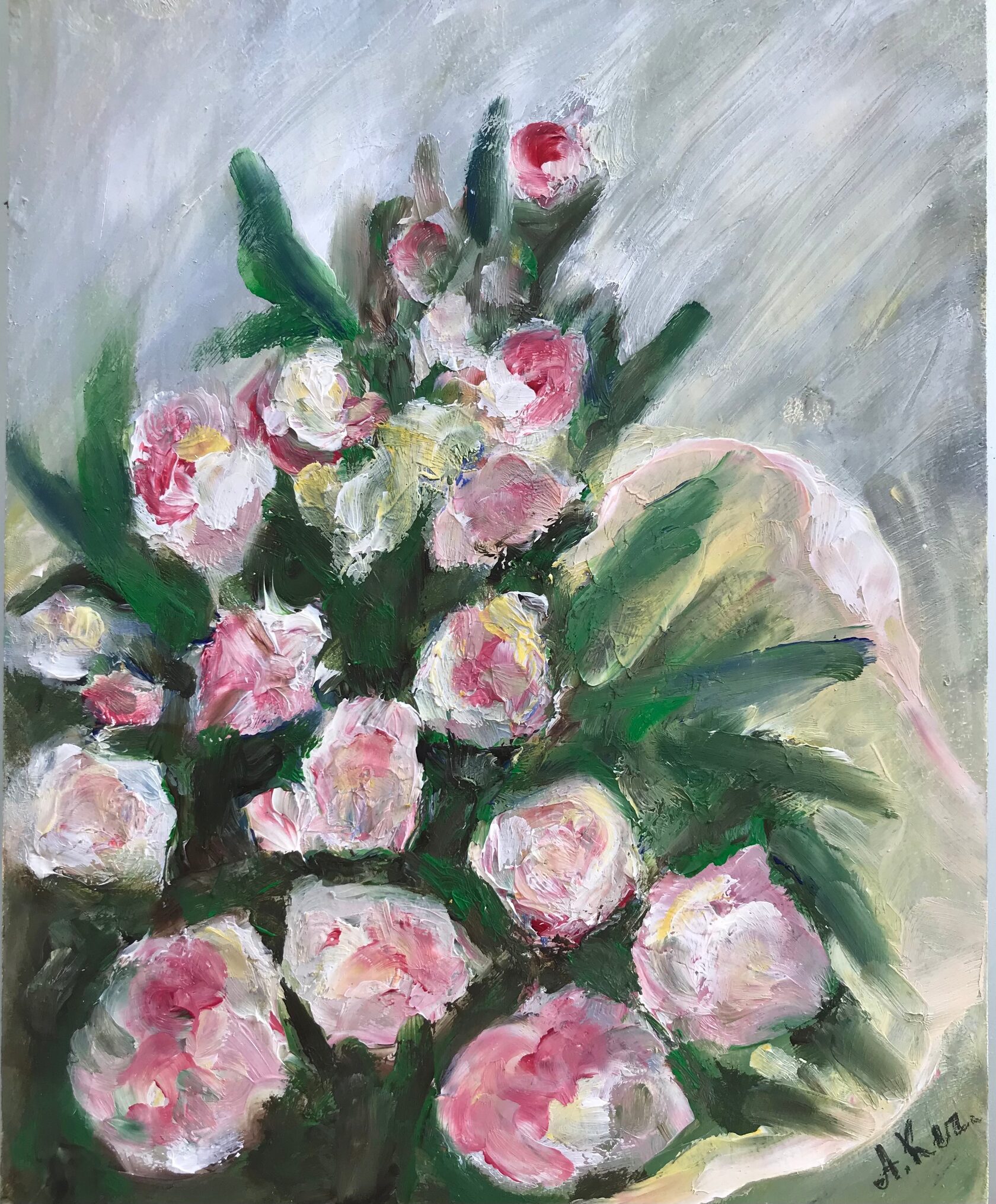 Рисунок Аллы Кечеджан "Весенний букет", бумага, мелки, 20*30