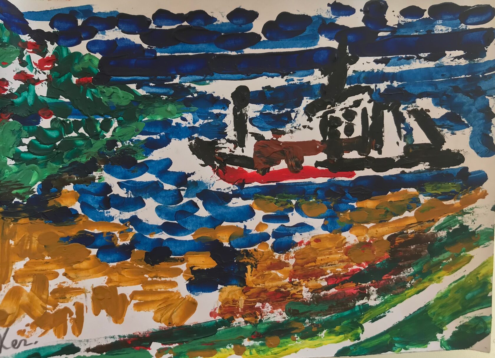 Картина современного художника Аллы Кечеджан "Белый теплоход", холст, масло, 25*25