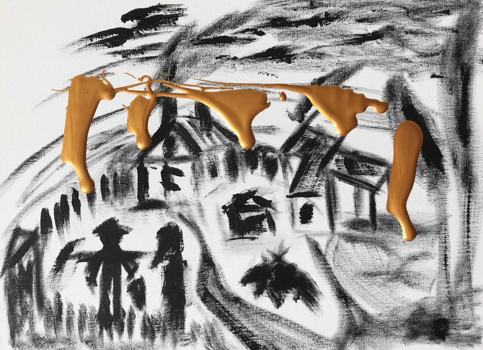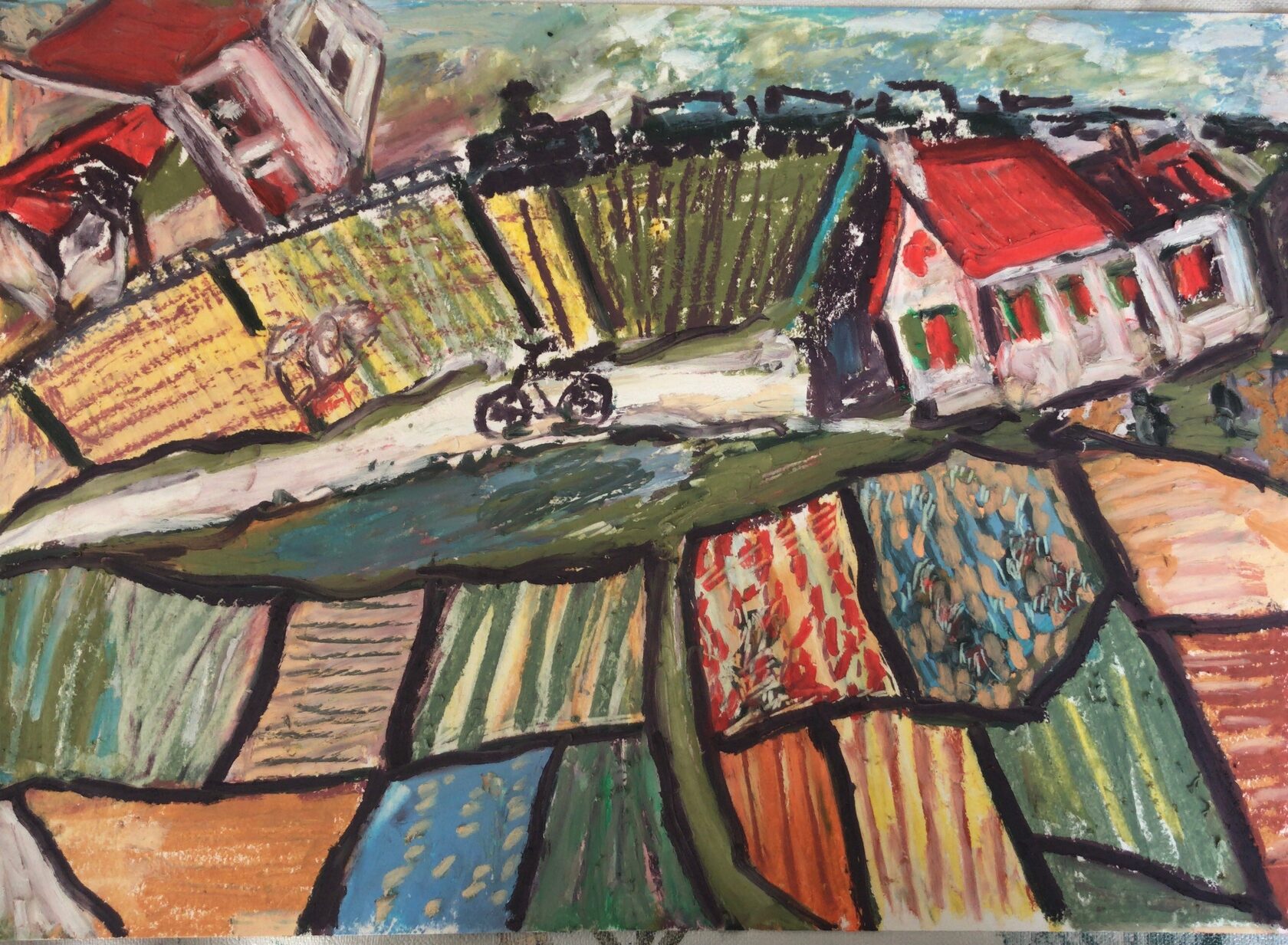Картина Аллы Кечеджан "Дом", бумага, масляные мелки, 20*30