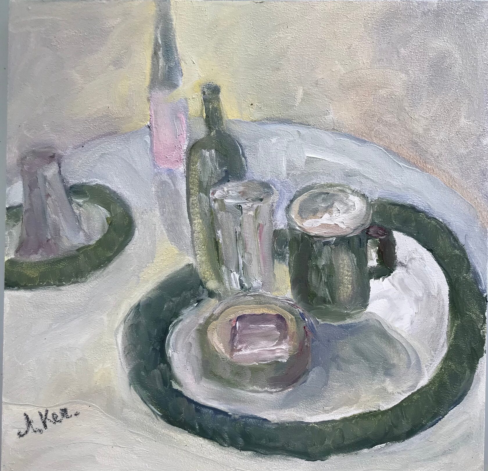 Картина современного художника Аллы Кечеджан "Завтрак в Варне", холст, масло, 25*25