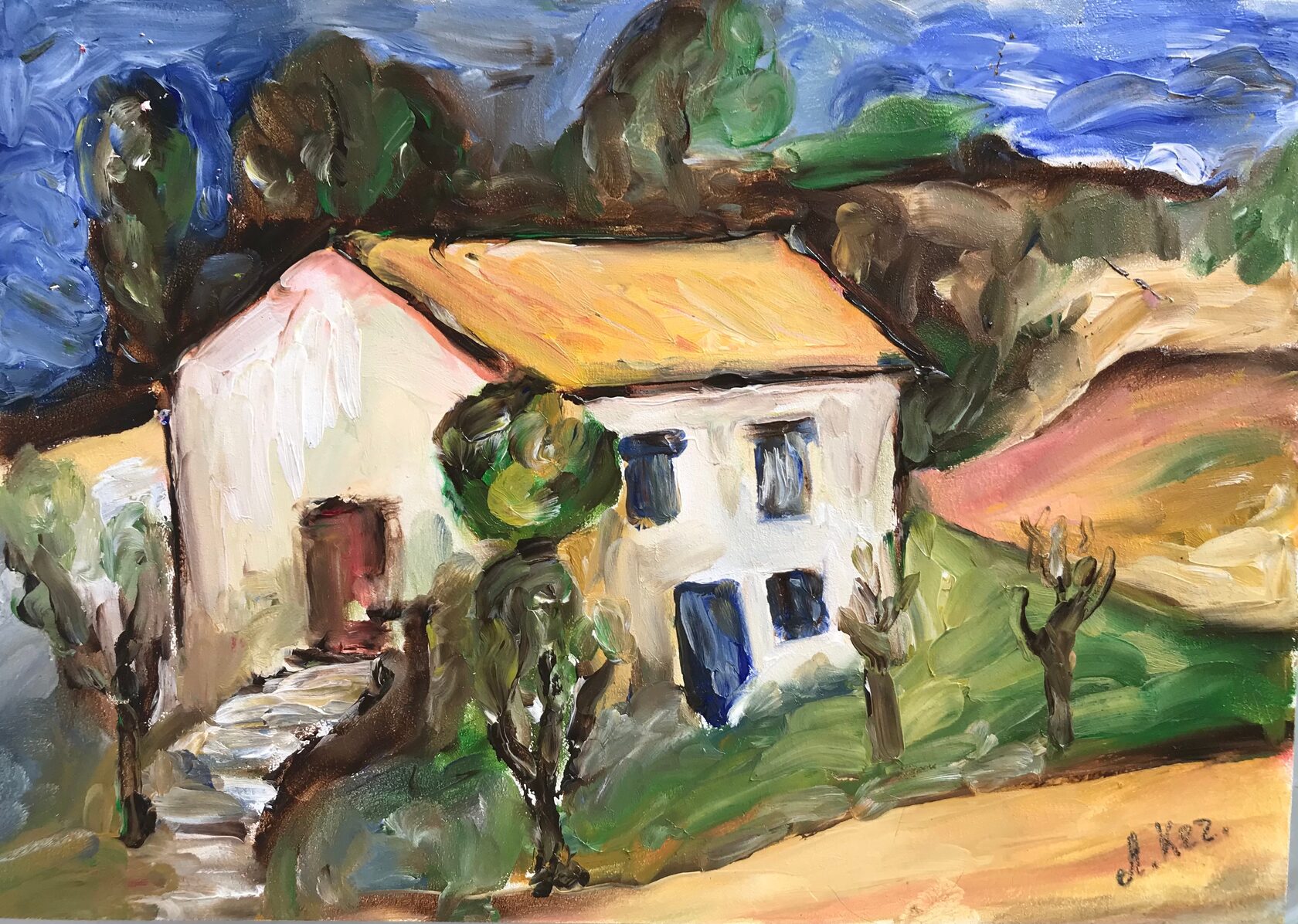 Картина Аллы Кечеджан "Дом в Правансе - диалог с Сезанном", холст, масло, 25*35