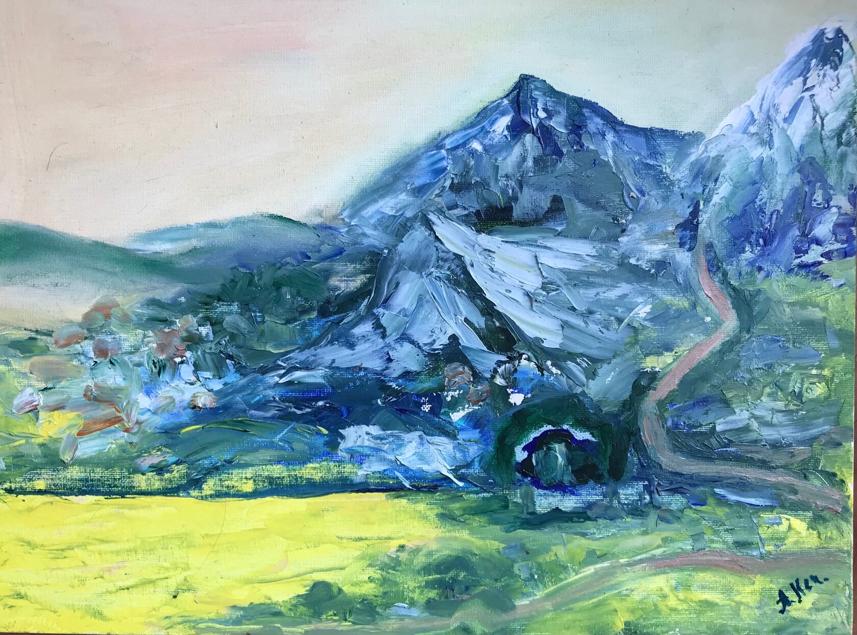 Картина современного художника Аллы Кечеджан "Долина в предгорье", холст, масло, 25*25