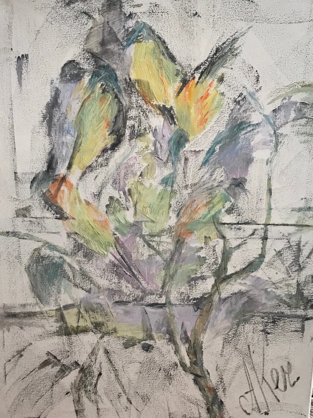 Картина современного художника Аллы Кечеджан, холст, масло, уголь 80*60, 2026