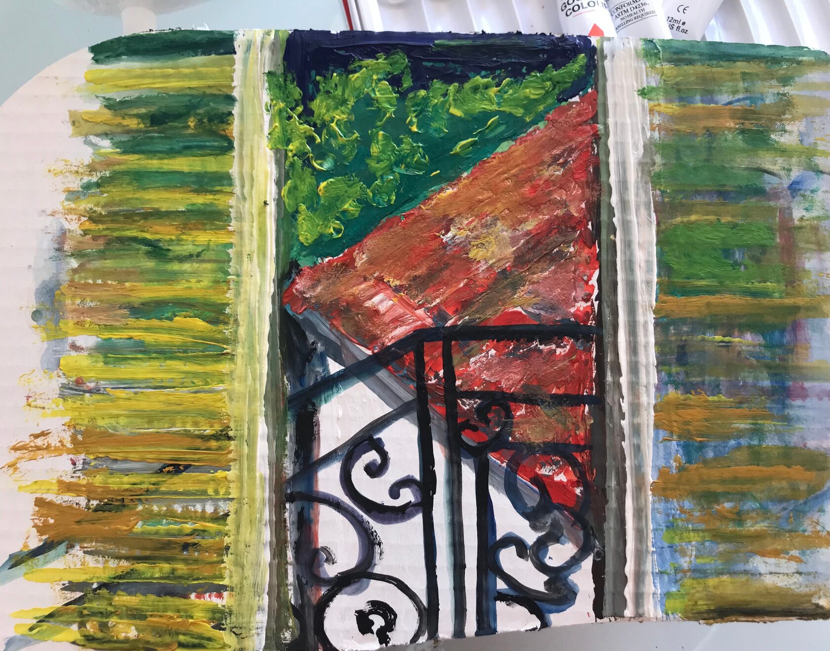 Картина Аллы Кечеджан "Мой балкон", холст, масло, 25*25
